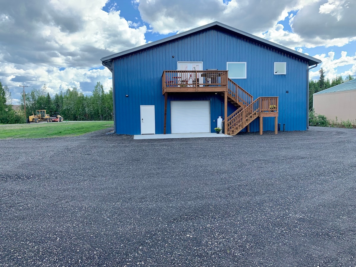 This is a unique Alaskan opportunity— your own 3-bedroom in the upstairs of an airplane hangar! The hangar/home is located right in the middle of a bush plane community with a landing strip- welcoming pilots and airplane tie downs and parking or float pond for aircraft with floats. Watch airplanes take off and land right from the bedroom window! You’ll get the full Alaskan experience, yet only minutes from town and all the local attractions. Aurora borealis has been seen from the indoors.