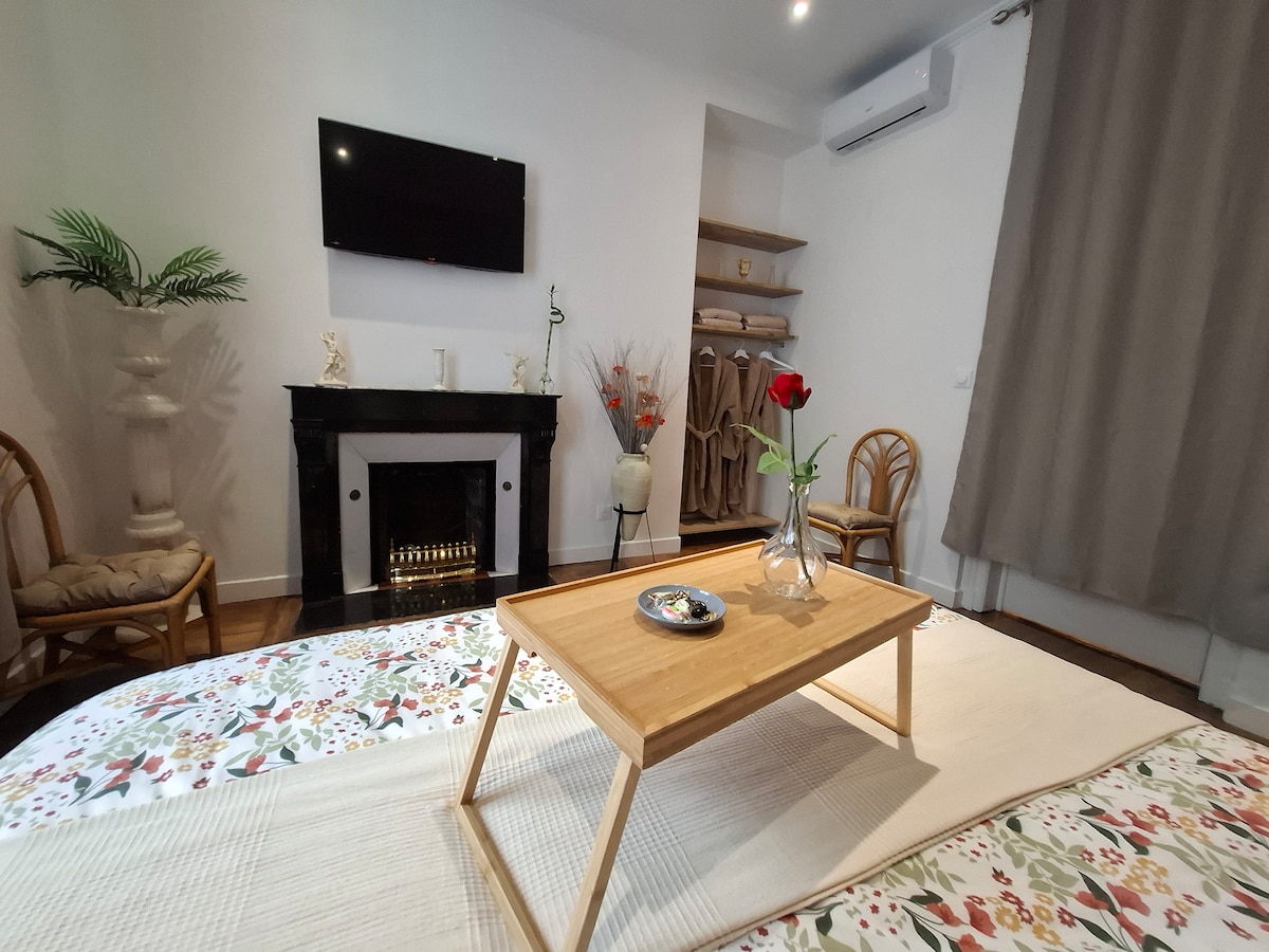 Kom og nyt et øyeblikk med flukt og avslapning i denne sjarmerende leiligheten med privat avslapningsbasseng, uten å bli oversett, i sentrum av Reims mellom Rue de Vesle (shopping) og den praktfulle Rue Buirette. Beliggende et steinkast fra Place d'Erlon, vil du være i nærheten av alle fasiliteter. Vår lokale produsents champagne venter på deg i kjøleskapet! Vær oppmerksom på: ingen fester, ingen kveldssamlinger, kamera ved inngangen til leiligheten som sjekker antall gjester som kommer inn.