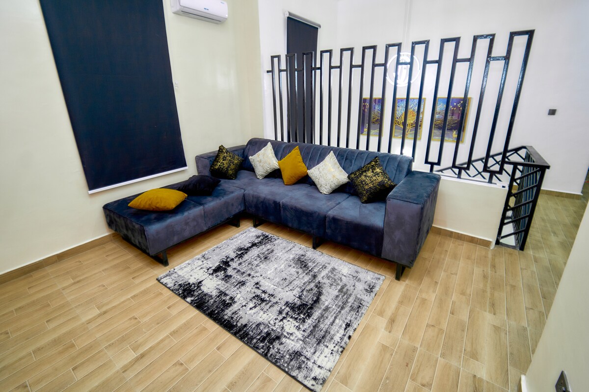 Opplev komfort i denne moderne to-roms maisonetten på en sikker, inngjerdet eiendom, overfor freedom way, lekki fase 1. Nyt strøm døgnet rundt, klimaanlegg, trådløst nettverk, sikker parkering og utsikt over den nye kystveien. Har romslige soverom med eget bad og smart-TV, en koselig stue, spiseplass og et fullt utstyrt kjøkken. Slapp av med en privat balkong, PS5 og brettspill. Bare minutter fra Nike Art Gallery, Landmark Beach, Filmhouse Imax og de beste restaurantene i Lekki – din perfekte ferie i Lagos!