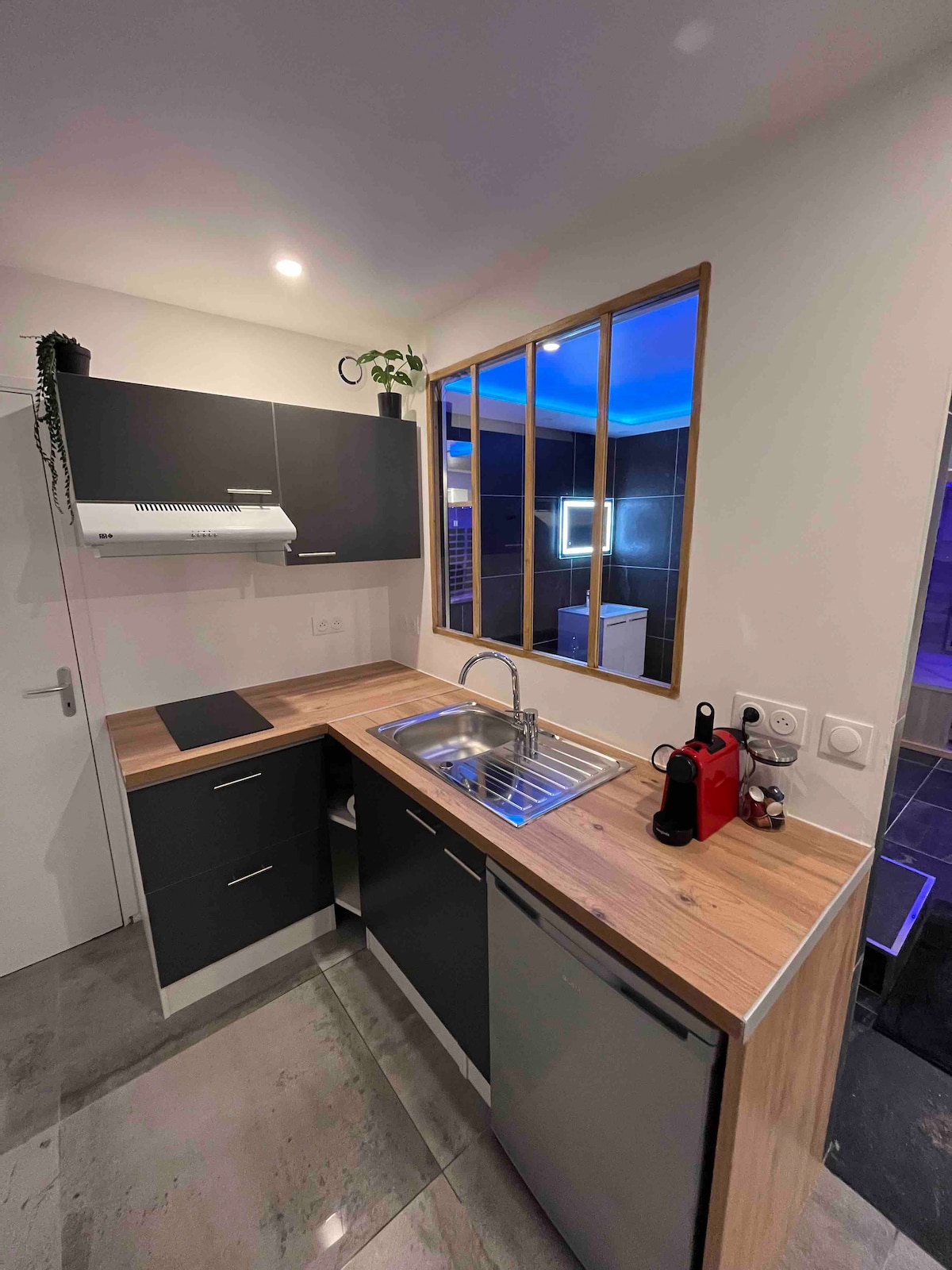 Oppdag denne atypiske og koselige boligen, en gammel låve som er restaurert med omhu. Nyt en unik innredning, inkludert møbler og barbotine, som skaper en varm og innbydende atmosfære. Dette fredelige tilfluktsstedet tilbyr en romslig plass med høy takhøyde, eksepsjonell komfort og et elegant badekar med løveføtter. Opplev en unik romantisk opplevelse i rolige og sjarmerende omgivelser, perfekt for å koble av og slappe av