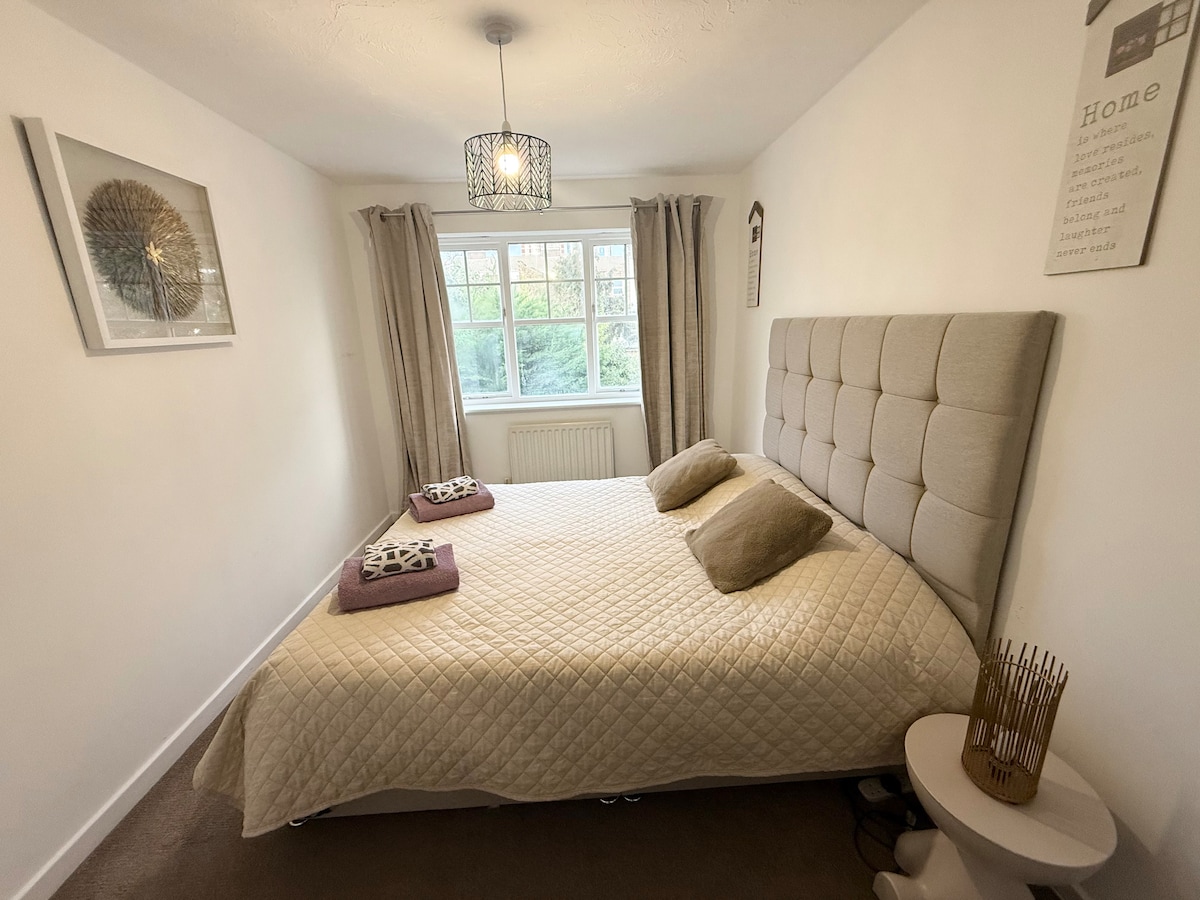 Velkommen til dette moderne, luksuriøse hjemmet med fire soverom, designet for familier og grupper som ønsker plass, komfort og bekvemmelighet. Nyt en romslig stue med en 65 tommers smart-TV, Netflix og raskt trådløst nettverk, ideelt for å slappe av etter en dag i byen. Hjemmet har to kingsize-senger, to dobbeltsenger, tre bad, inkludert et eget bad, og et lyst kjøkken i åpen planløsning og spiseområde. Gjester har også tilgang til en parkeringsplass ved veien (10 pund per dag). God beliggenhet nær East Ham busstasjon, lokale butikker og kaféer.