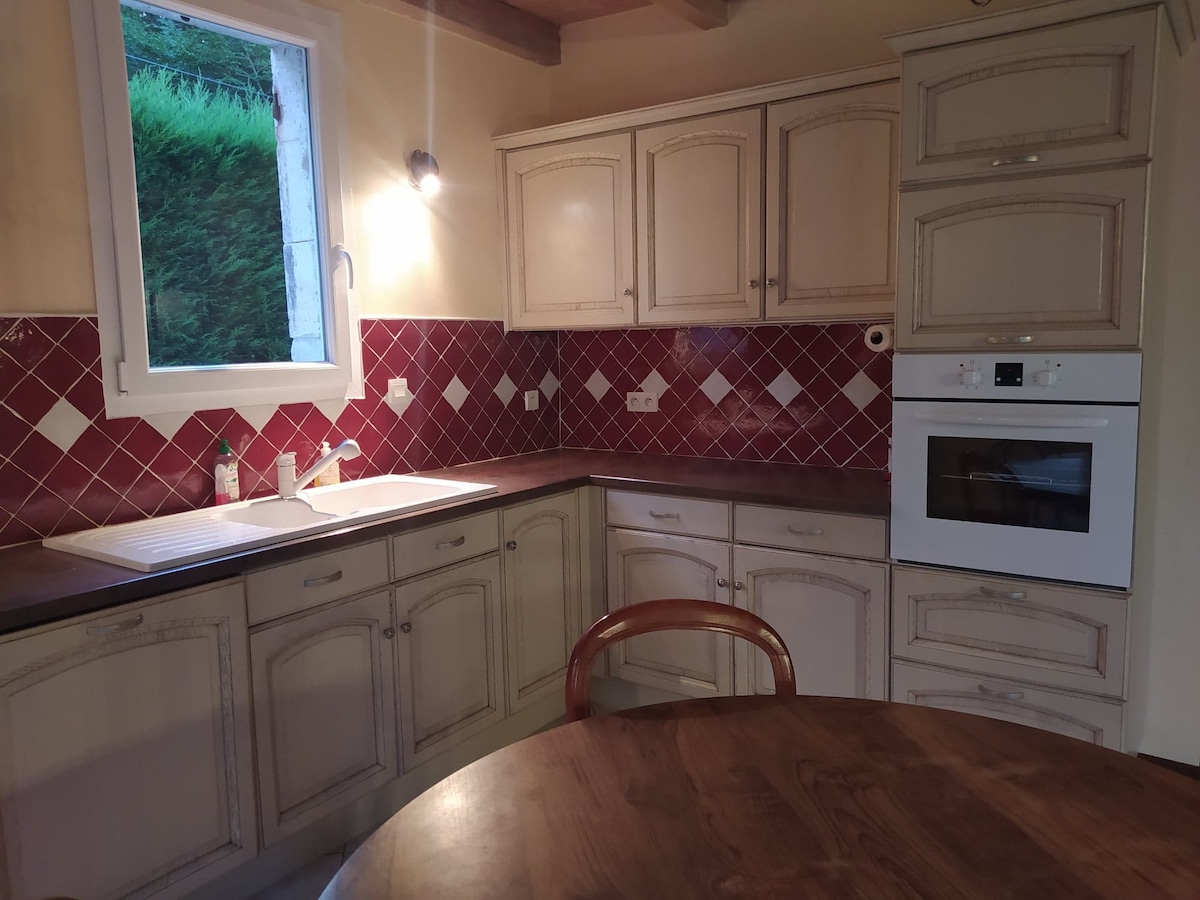 Nyt et elegant og sentralt opphold, nær alle butikker, barer, restauranter, plasser, i det historiske sentrum. Utsikt mot Dronne og slottet. 500 meter fra campingplassen og stranden, tennisbane, kajakkpadling og flere turstier til nabokommunene. Huset har en spisestue, kjøkken og toalett i første etasje, og i andre etasje en balkong med panoramautsikt, bad, toalett, et foreldresoverom og to små rom for tre barn.