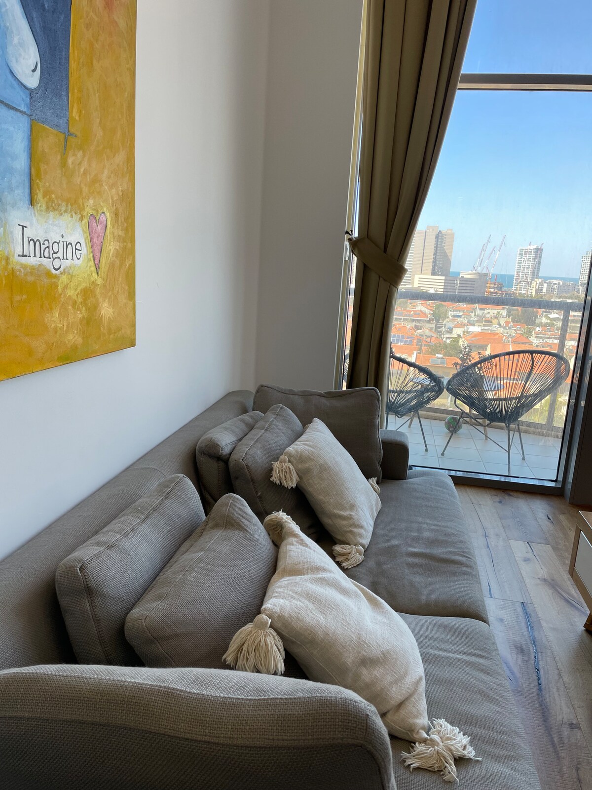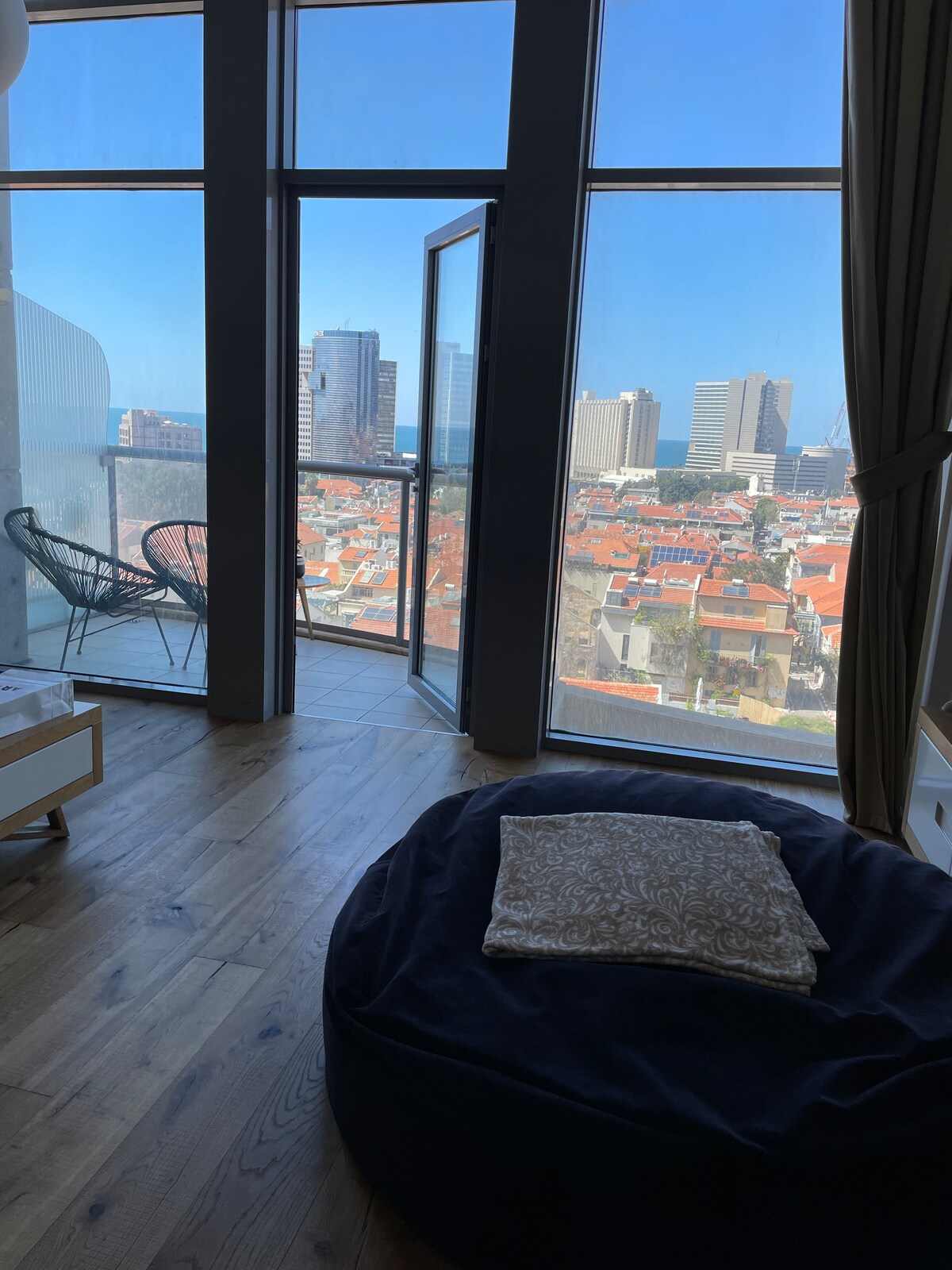 Luksusleilighet med panoramautsikt over havet, Jaffa og Tel Aviv. Lys stue med vinduer fra gulv til tak, moderne kjøkken og romslig balkong. To soverom med havutsikt og to elegante bad. Gjestene har tilgang til innendørs basseng, treningsstudio, sikker parkering og døgnåpen concierge. Raskt trådløst nettverk og moderne design, perfekt for fritid og forretninger.