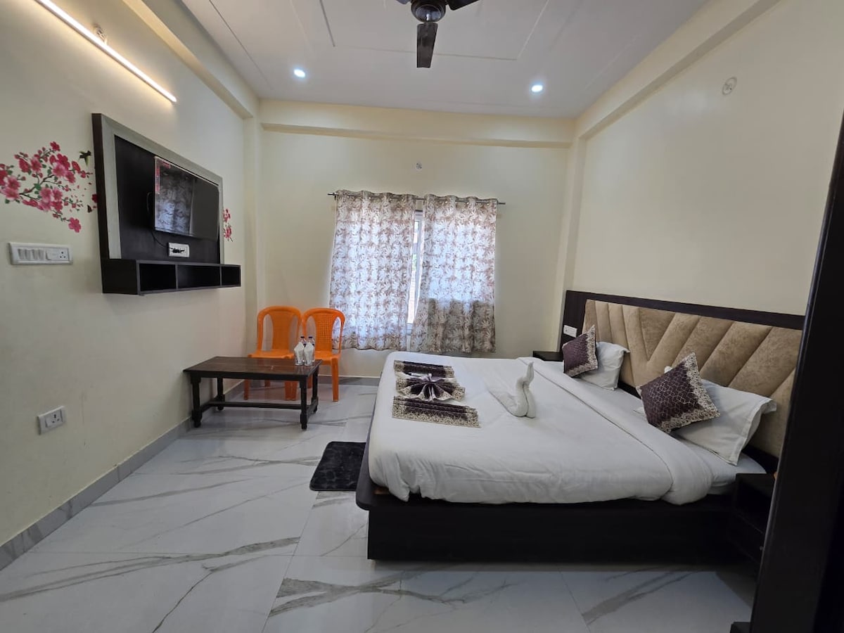 «Opplev et rolig og komfortabelt opphold i den fantastiske byen Ayodhya.» Eiendommen vår er nøye utformet for gjester som besøker Shri Ram Mandir, og tilbyr fredelige omgivelser etter darshanen din. Vi sørger for rene rom, hjelpsom service og et problemfritt opphold. Hjelp til henting og lokal veiledning er tilgjengelig for å gjøre reisen din smidig og praktisk. Perfekt for familier og hengivne som er på utkikk etter komfort, sikkerhet og en virkelig fredfull Ayodhya-opplevelse.»