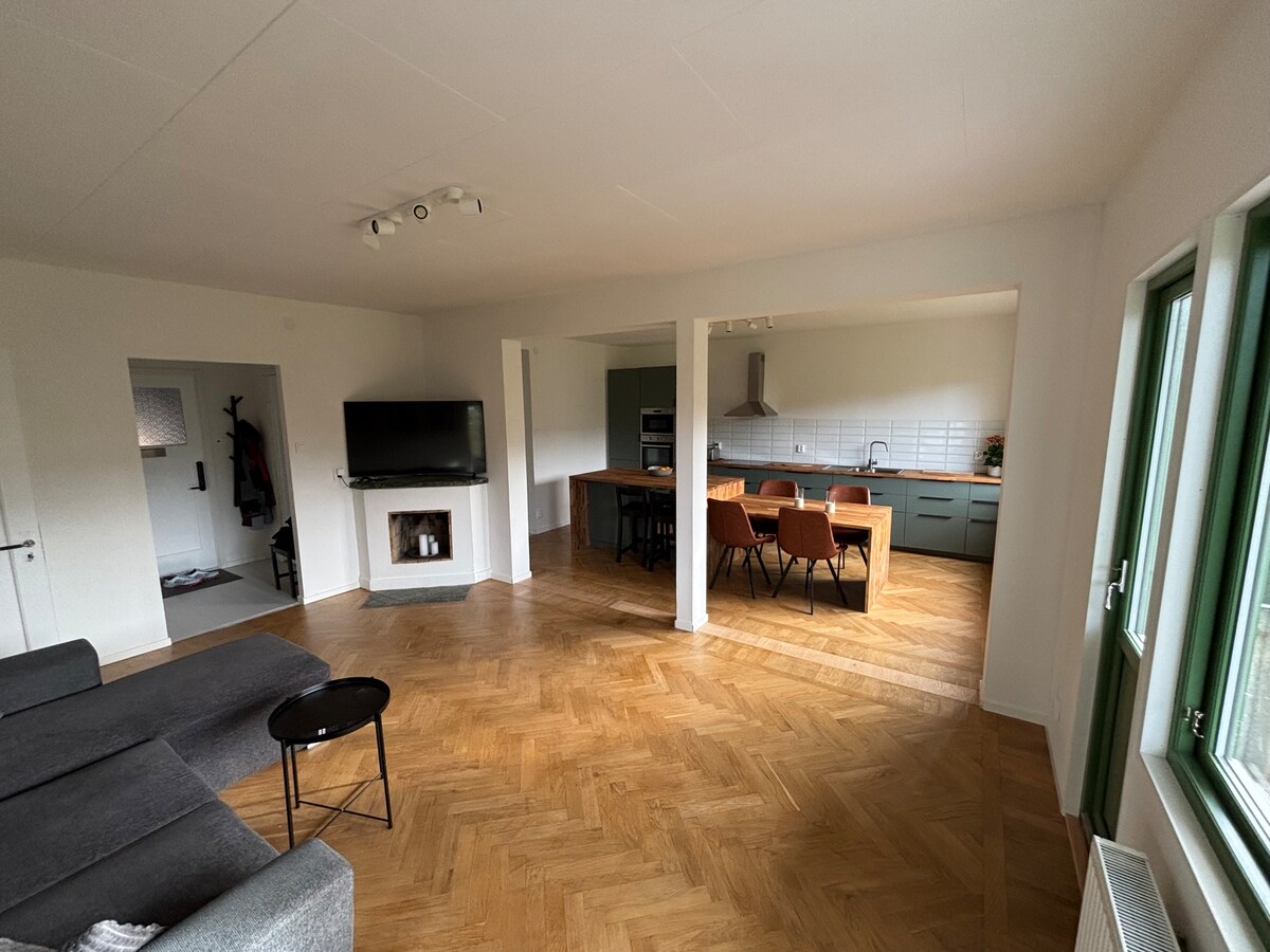 Her håper vi at du trives i et rolig boligområde. Du får en fin gårdsplass og privat terrasse . Til sentrum tar det maksimalt ti minutter å gå, og den nærmeste dagligvarebutikken ligger bare fem minutter unna. Grill eller lån sykler? Gi meg beskjed! Innsjekking uten vert med nøkler i nøkkelboksen på veggen utenfor, koden oppgis etter bekreftet bestilling. Merk Rengjøring utføres av deg som gjest. Ta gjerne en ekstra sjekk når du ankommer og gi meg beskjed hvis noe ikke er greit.