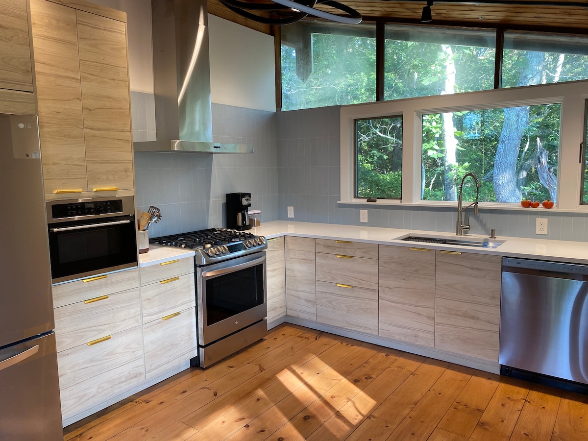 Dette er en totalrenovert hytte med to soverom. Tre flatskjermsmart-TV-er. Trådløst nettverk. Fliser overalt. Denne enheten er nøkkelferdig og fullt utstyrt. Det er en utendørs sitteplass, ekspansiv, privat bakgård inkludert gassgrill. Kjøkkenet er godt utstyrt, inkludert fliser, rustfrie apparater, kvartsbenkeplater og mer. Vi er et halvt kvartal til hovedgaten, to kvartaler til havnen og ferger til Martha's Vineyard. Vi er også mindre enn en mile unna havet.