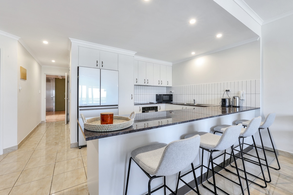 ☞ Basseng ☞ Balkong med utsikt mot havnen. ☞ Romslig og komfortabel 168 m² ☞ To soverom med eget bad. ☞ Kingsize-senger og queensize-senger ☞ Parkering (på stedet, to biler) 5✭"Roberts sted er en perle av en leilighet. Den har absolutt alt du trenger" Trådløst nettverk på ☞ 92 Mbps ☞ Smart-TV 55 tommer ☞ Fullt utstyrt + fullt utstyrt kjøkken ☞ Innsjekking uten vert ☞ Bagasjeoppbevaring tilgjengelig. ☞ Vaskemaskin + tørketrommel. ☞ Klimaanlegg 》Dynamisk prissetting – leilighet til samme pris som et hotellrom 》20 minutter til flyplassen. 》Gangavstand til kjøpesenteret, kasinoet, Cullen Bay og Mindle Markets.