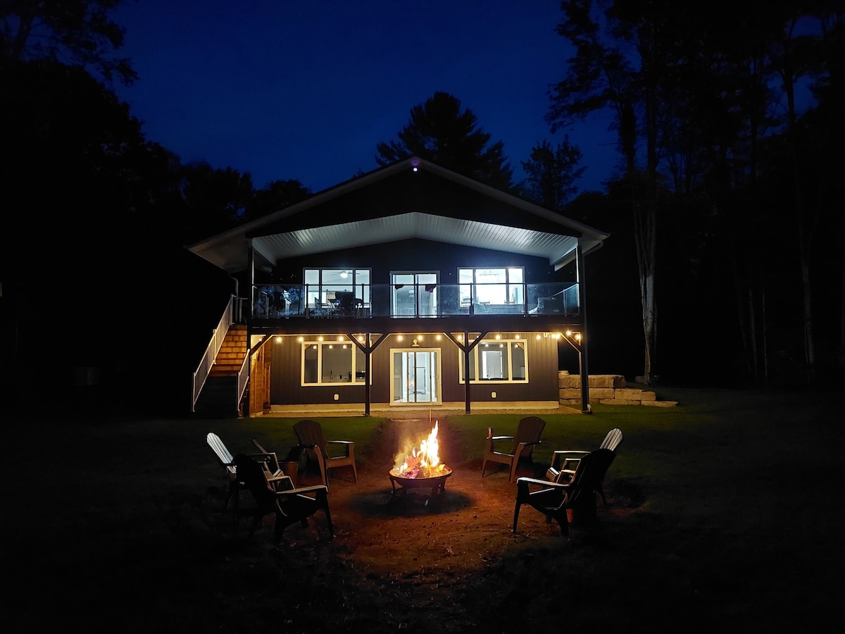 Welcome to our brand new waterfront cottage that's perfect for nature enthusiasts! This cozy retreat is the ideal getaway for those seeking outdoor adventure & relaxation in the heart of nature. Next to snowmobiling/ATV trails and stunning nearby parks for hiking and biking, you'll never run out of activities! Take a kayak out or fish on the river in the backyard. After a day outdoors, unwind and reconnect - relax in the brand new barrel sauna or snuggle up next to the fireplace or firepit.