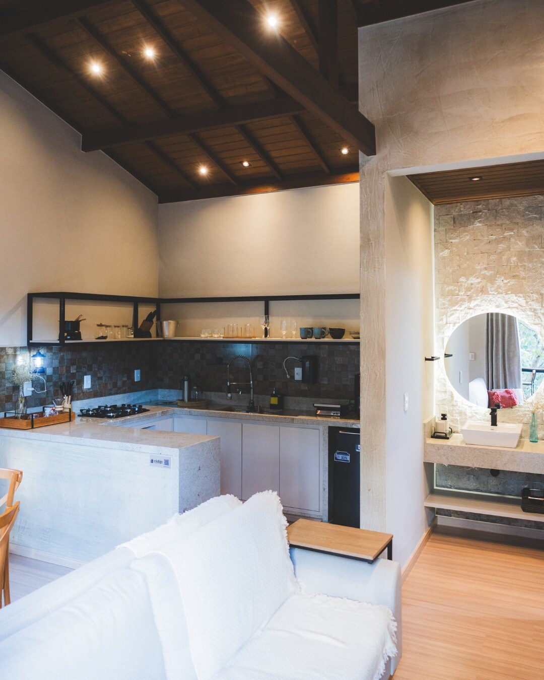 Chales Bruma & Aurora er ideelle for par som ønsker hvile, privatliv og kontakt med naturen. Med rustikk arkitektur og en koselig atmosfære tilbyr den et komfortabelt soverom, bad, et funksjonelt kjøkken og en balkong med utsikt over fjellene. Perfekt for å slappe av, utforske stier, fossefall og leve enkle og minneverdige øyeblikk.