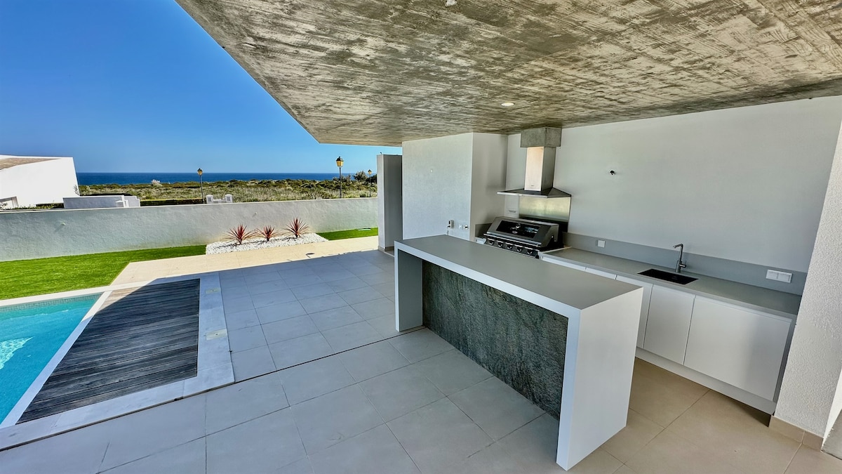 Arkitektonisk moderne villa med havutsikt