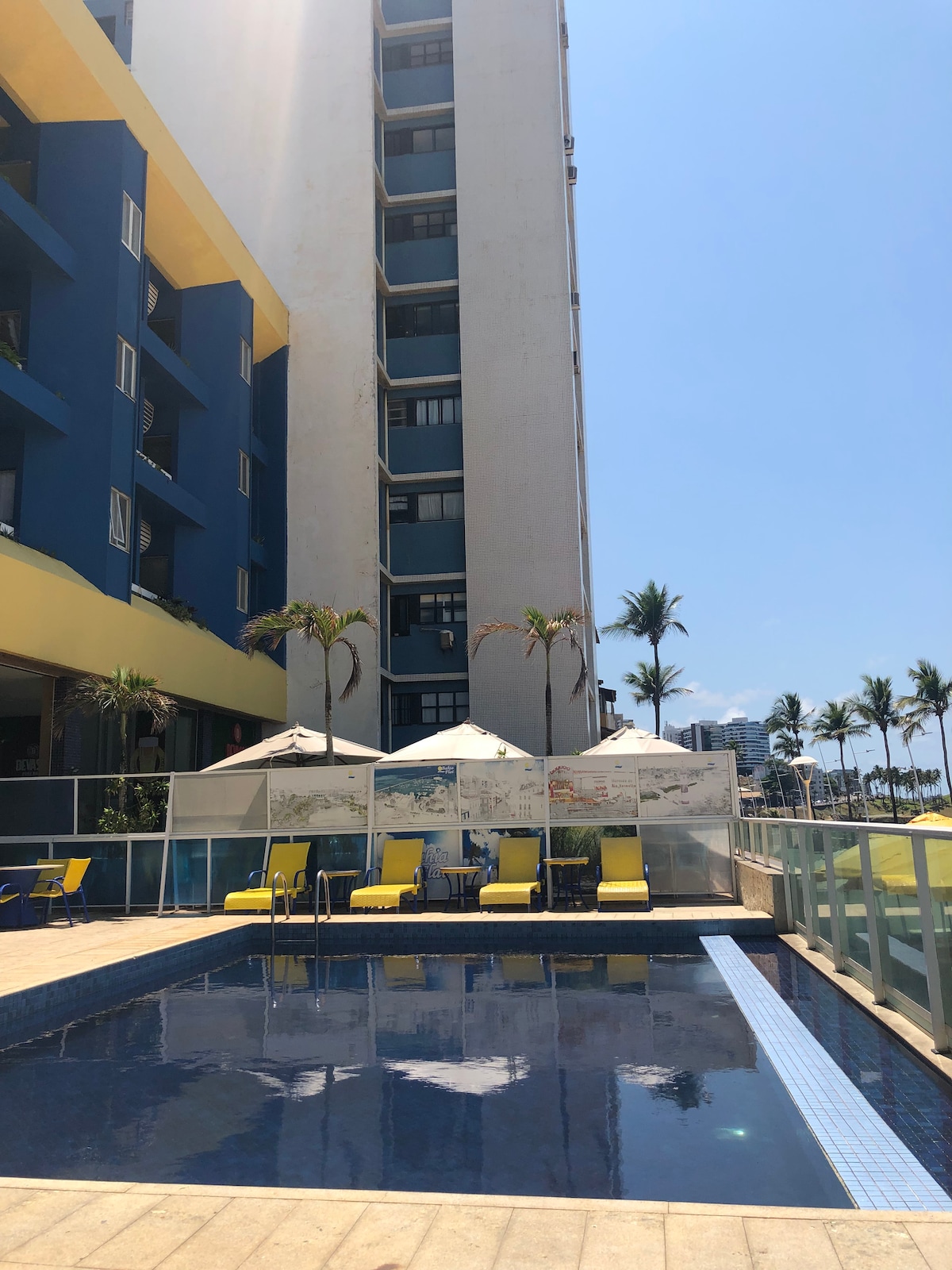 🎉⋆✴︎Karneval 2027✴︎Den beste utsikten over Barra-Ondina-banen✴︎Privat boks inkludert✴︎⋆🎉 Leilighetshotell med døgnåpen resepsjon, daglig romservice, overbygd garasje og svømmebasseng (åpent tirsdag til søndag). Flott beliggenhet, beliggende foran stranden og 50 meter fra Farol da Barra, i nærheten av museer, restauranter, banker, supermarkeder og kjøpesentre.