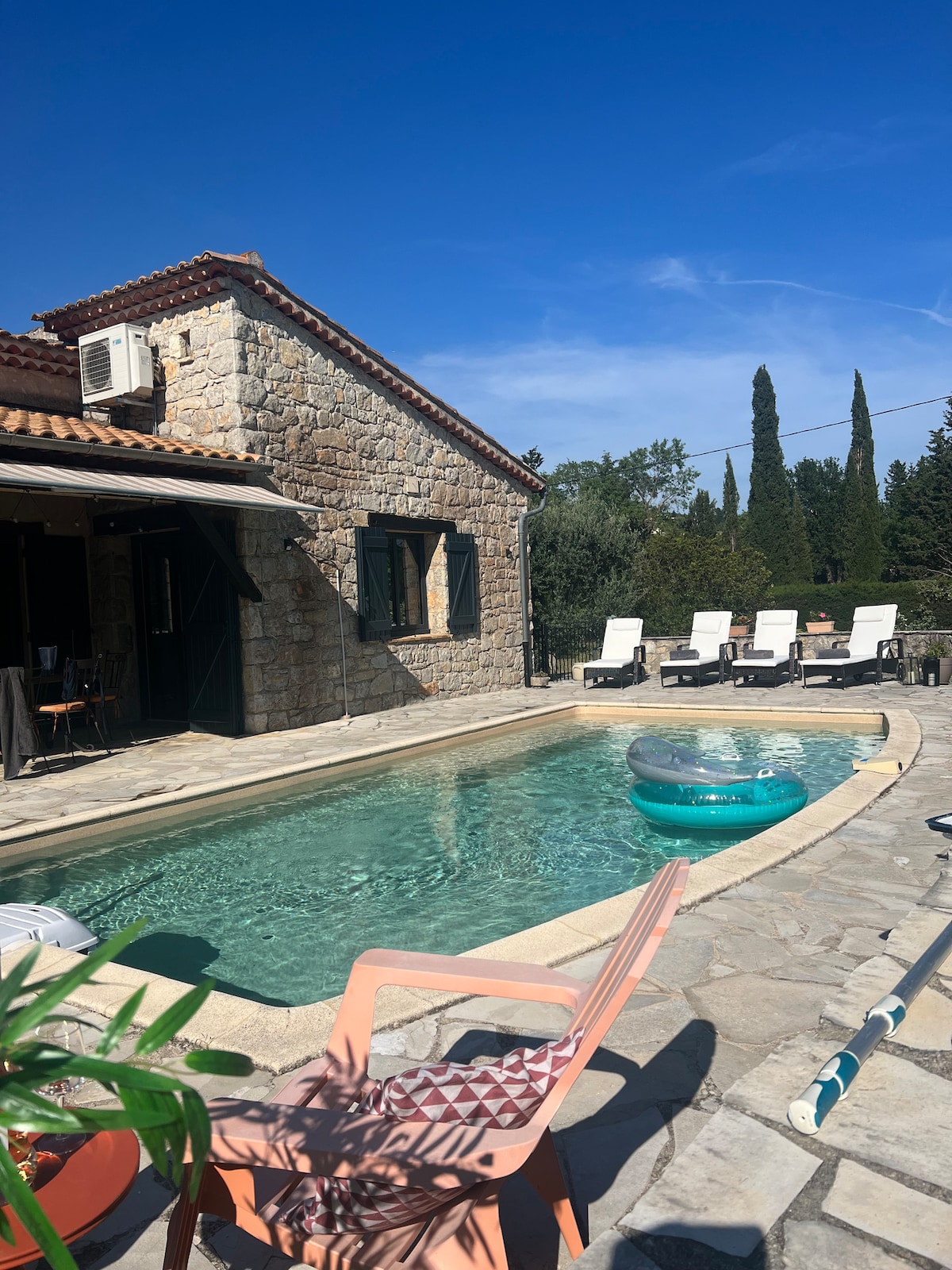 På Côte d'Azur, i hjertet av Provence og i en skogkledd ramme, i absolutt ro, skjermet fra blikk, kom og lad opp i denne flotte nye og moderne villaen omgitt av grøntområder med stort basseng. 2 hektar hage. Sjarmerende hus på 200 m², veldig solrikt, aircondition, jacuzzi og utstyr som gir stor komfort. Ideell for en familieferie / med venner, mange aktiviteter i nærheten. Kom og oppdag vår vakre region, vi gleder oss til å ønske deg velkommen.