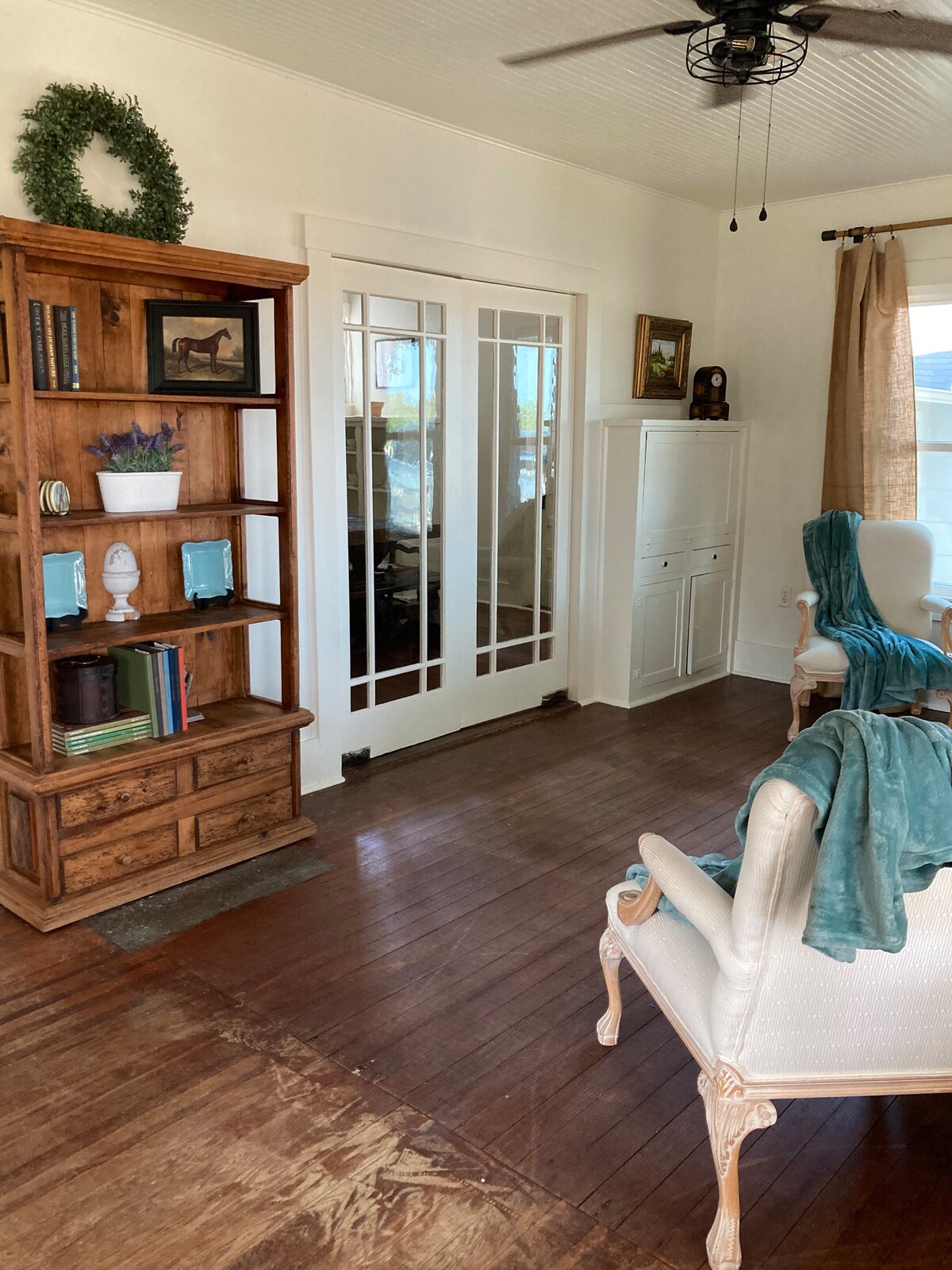 The Vintage Round Top – Boho Cottage ★ Luksusutleie nevnt i over 250 nasjonale publikasjoner og reiseguider. ★ Badekar, private terrasser, vintageinnredning fra Paris, Provence og Amsterdam. ★ Privat, overdekket treverksterrasse med utsikt over beite med Weber gassgrill, Roku TV-er. ★ Spisebord for åtte • Gasspeis! • fullt utstyrt og fylt kjøkken ★ Håndlaget Stearns & Foster Super Plush Pillowtop madrass og Blackout-gardiner.