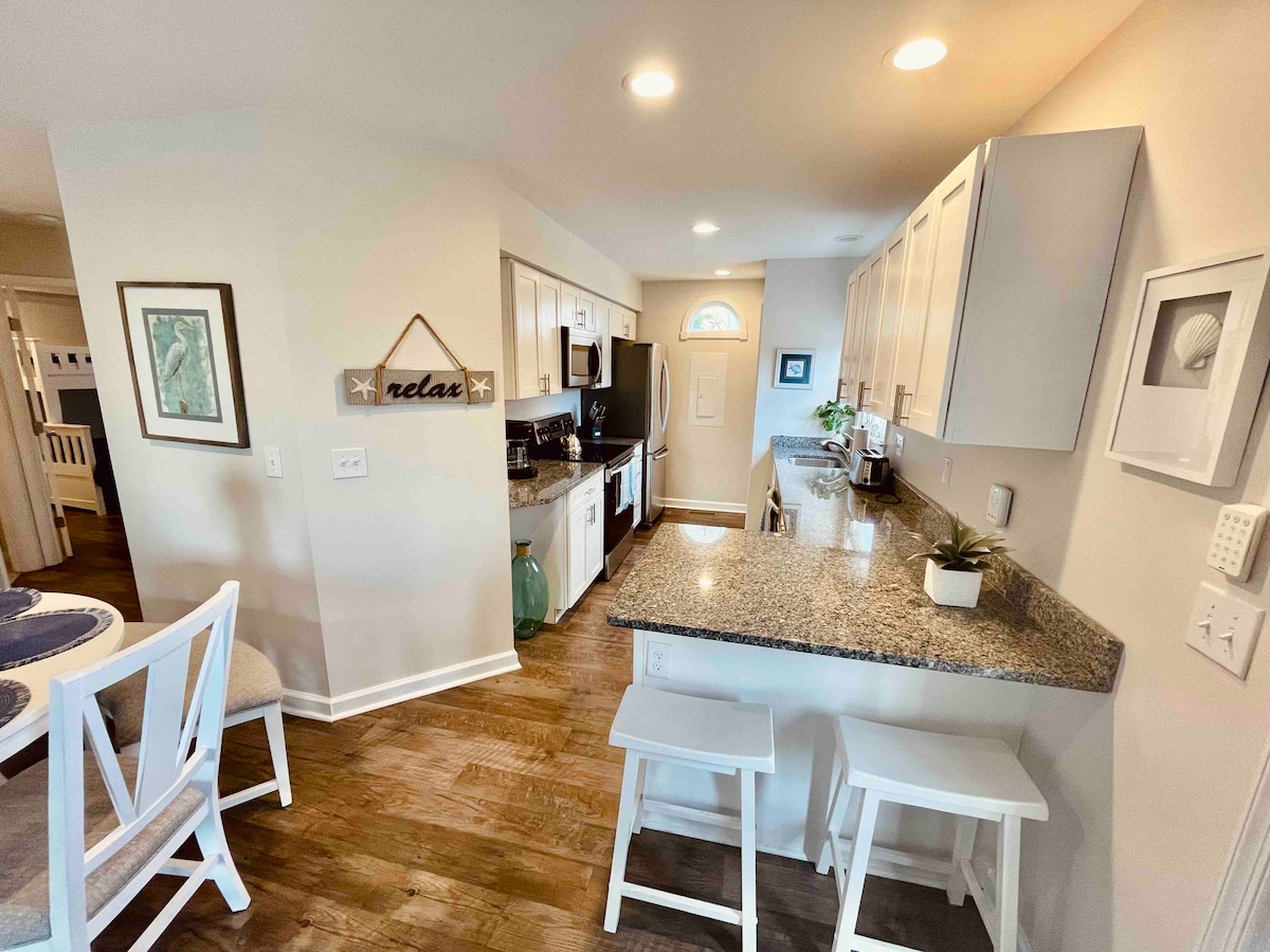 Welcome to our Fenwick Island beach condo! Less than a one minute walk until your toes are sinking into beautiful Delaware beach sand. Beautifully decorated 3 bedroom 2 full bath condo, beach-view balcony and carport. Perfectly situated in quiet Fenwick Island on coveted Bunting Ave. Boardwalks, go-carts, mini-golf within 5 min walk. We cherish our lovely little home away from home, and we hope that you do too. Beginning August 23, 2025 bed sheets will be included as part of your cleaning fee.