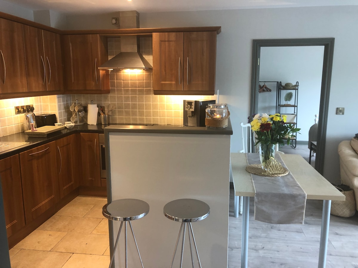 En fantastisk moderne leilighet i første etasje med selvhushold med utsikt over Lough Erne. Leiligheten ved innsjøen ligger i utkanten av byen Enniskillen, og tilbyr sjarmen og roen ved å bo ved vannkanten, men likevel bekvemmeligheten ved å være i gangavstand til butikker, kafeer og restauranter. Leiligheten består av et åpent kjøkken, spisestue og stue, separat soverom og bad, sitteplasser utenfor foran leiligheten og privat brygge.