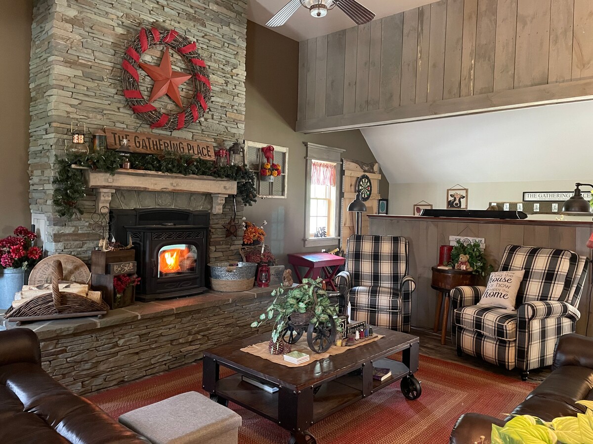 Overlook at Ithaca er et moderne gjestehus med ett soverom som ligger over Cayuga-sjøen, og det tilbyr vidstrakt utsikt, katedraltak og gulv-til-tak-vinduer. Dette forhøyede feriestedet er nøye designet med eksklusive detaljer og et kjøkken for kokker, og er ideelt for gjester som søker et rolig, raffinert opphold i nærheten av vingårder, spisesteder og Ithacas ikoniske landemerker.