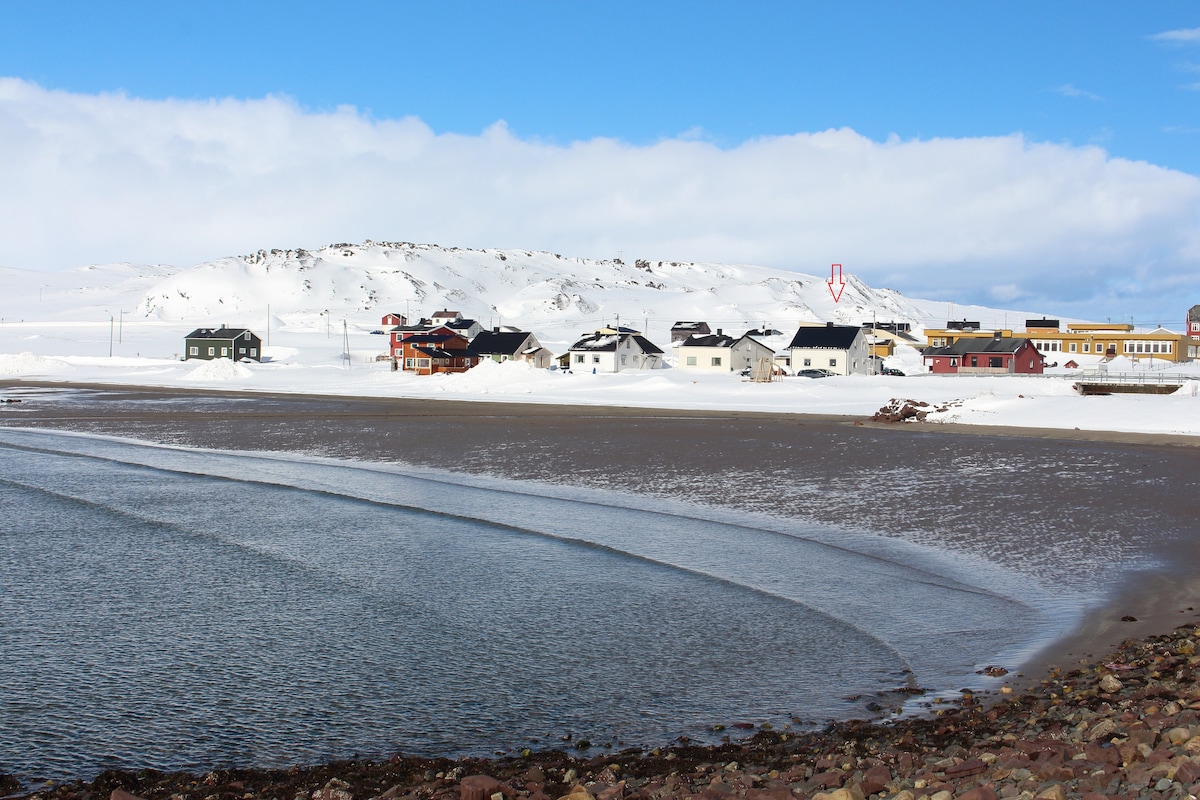 Leiligheten ligger i et fredelig lokalt boligområde 1,3 km fra Honningsvåg sentrum. 30 minutter med bil fra Nordkapp. Leiligheten har en sovealkove med en dobbeltseng og en romslig stue med en 140 cm bred futon-sovesofa. Fullt utstyrt kjøkken og et stort bad. Og en privat carport. Vi ønsker at du skal ha et avslappende opphold under eventyrene dine på Nordkapp.