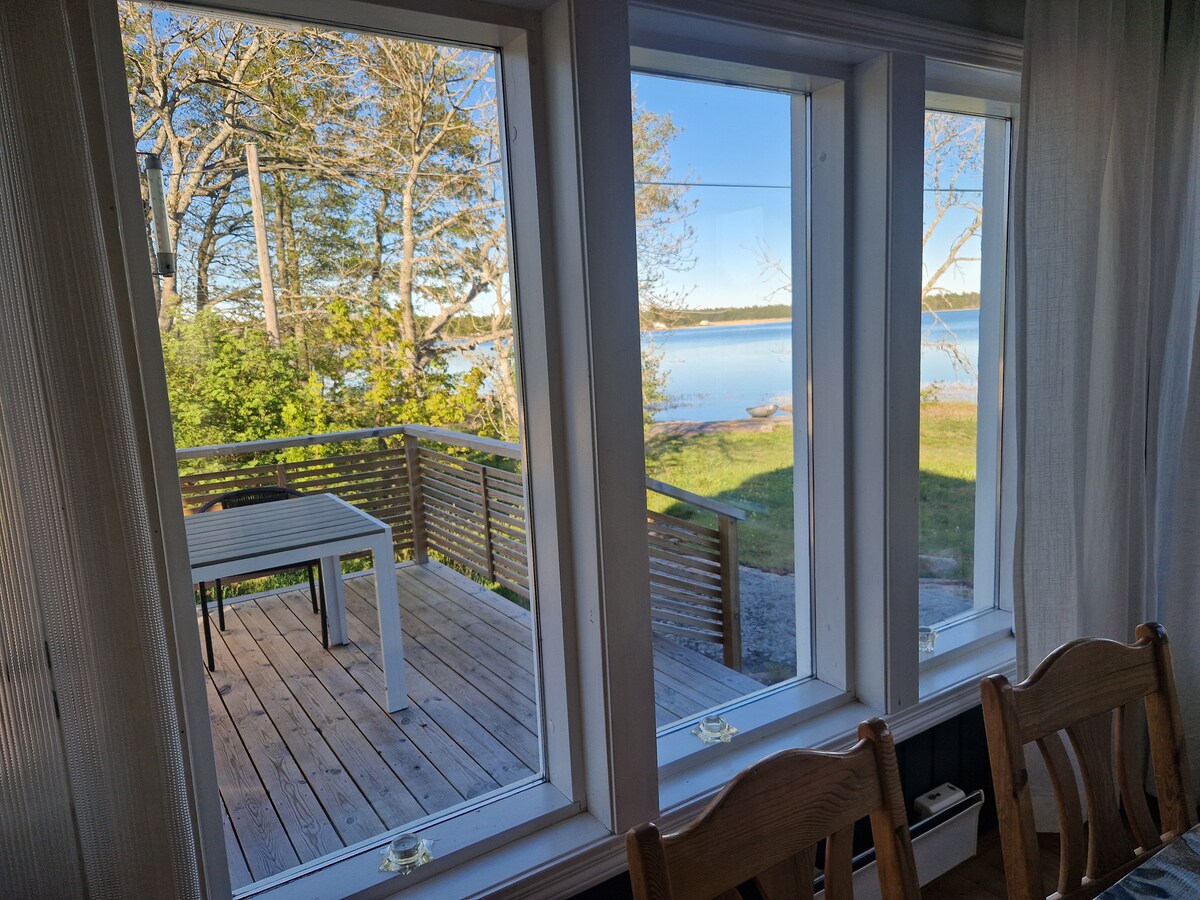 Tømmerhytte med vakker utsikt over Färjsundet