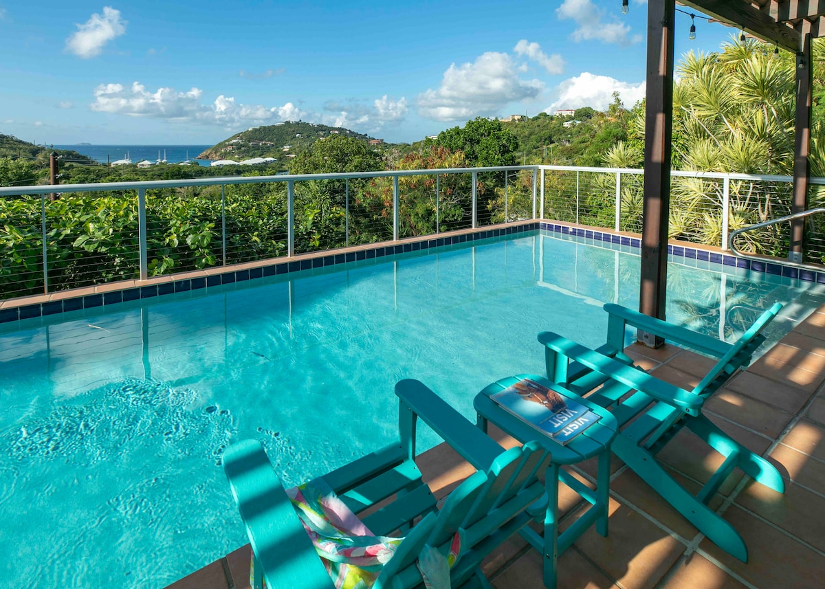 Lunazul Villa, 2BR/2.5BA, Solar/Starlink NY PÅ AIRBNB!! 180 graders utsikt over Coral Bay, Norman Island, Tortolla og mer. Uhindret utsikt over det glitrende vannet fra alle rom og oppvarmet basseng med stor terrasse. Begge soverommene med eget bad har komfortable møbler, alle er designet for å gi et rolig tilfluktssted. Du er utstyrt med en vaskemaskin og tørketrommel, filtrert/UV-drikkevann og full solenergi som sikrer at du aldri vil bekymre deg for strømbrudd på øya.