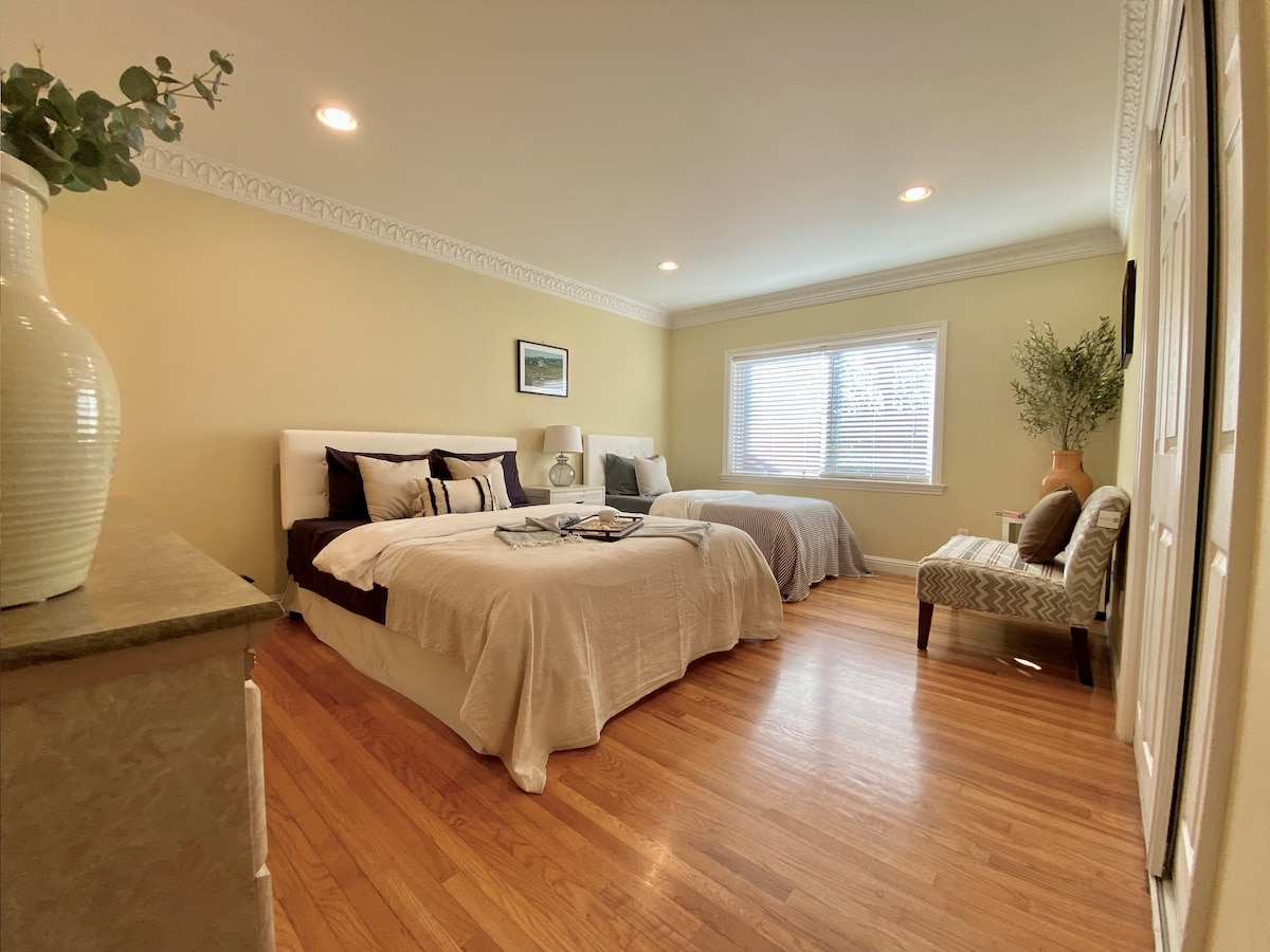 Den store hagesuiten med eget inngangsparti og ett soverom er romslig og stille. Beliggende i familiehjemmet vårt i Presidio Heights, har du praktisk tilgang til Presidio, de mange kilometerne med turstier, aktiviteter, VC og teknikkontorer. Vi er en rask spasertur eller tur til noe annet sted i byen. Utforsk restauranter med Michelin-stjerner, kaffebarer, travle Clement Street og NOPA-nabolagene, Presidio Tunnel Tops — eller slapp av på terrassen og les en bok. Merk: Det er ingen komfyr eller stekeovn.