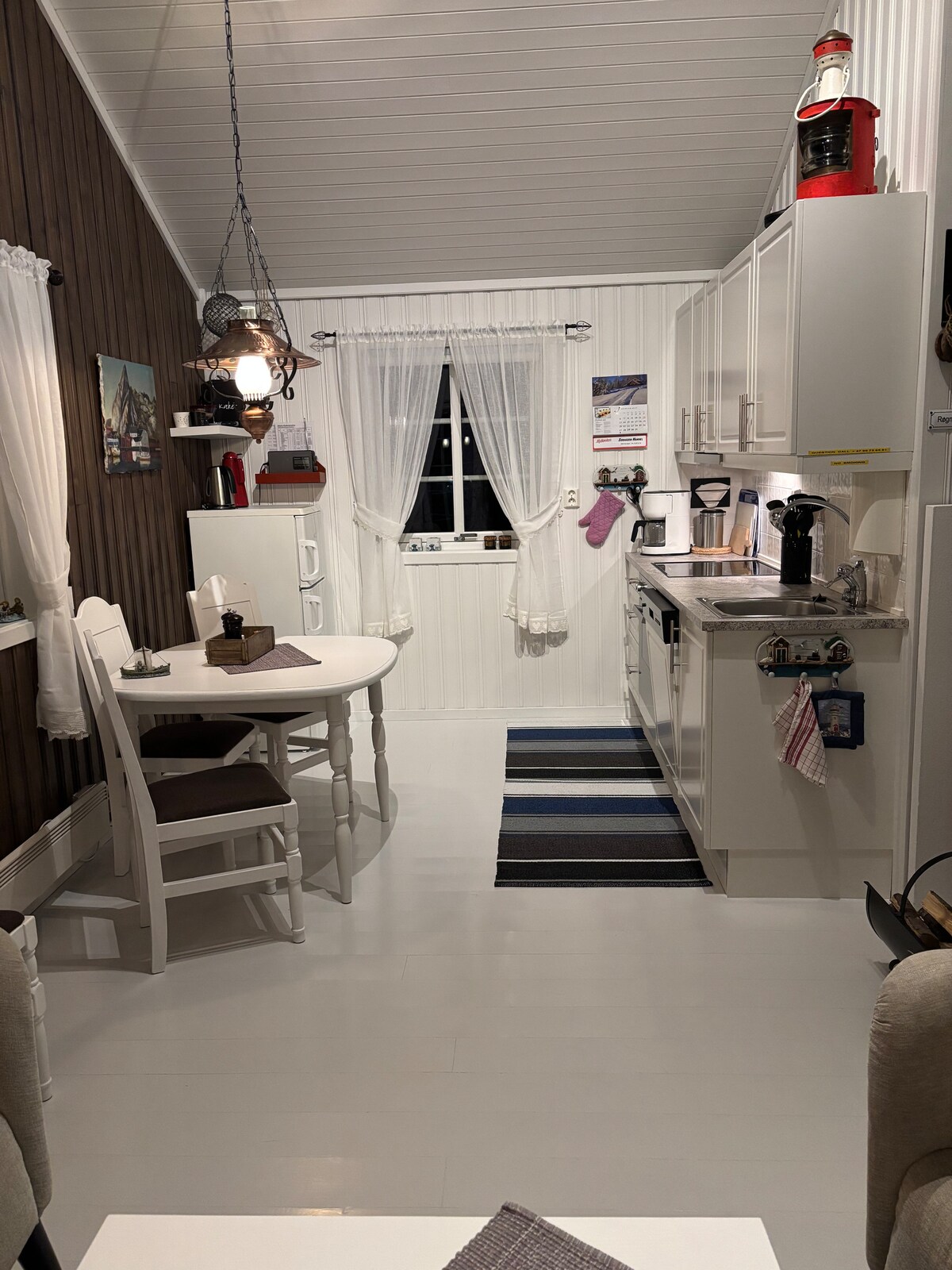 Enjoy your stay in Lofoten in a fishermans cabin with everything you need. The cabin is new, modern, and lays right by the ocean and mountains. The cabin is equipped with everything you need, with a large, fully equipped kitchen, four bedrooms, a living room with a beautiful view, 1,5 bathrooms with shower and washing machine, and a dining room with room for the whole family. Nice fireplace in the livingroom on the second floor.