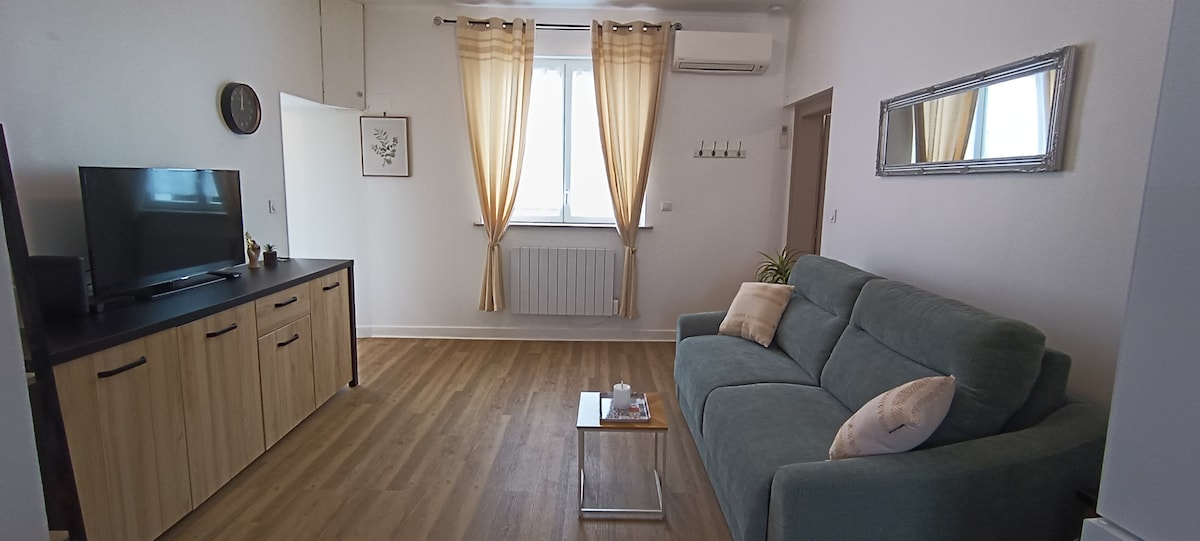 Nyt et optimalisert, stilig, sentralt, rolig og skogkledd overnattingssted på 19 m2 som ligger på det avsidesliggende hagenivået. trafikk på en privat gårdsplass. Apotek, restaurant, bakeri, aviser på avenyen. Det ligger tre minutters gange til sentrum. Sofaen er 22 cm, sengemål 120 x 190. Badet med vindu er utstyrt med dusj. Kjøkken med basisartikler, vaskemaskin. Ideell for et opphold om kvelden eller for noen dager med å besøke Nivernais.