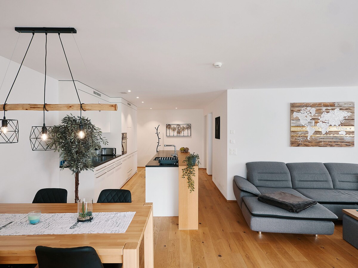 sentralt plassert 3,5 roms leilighet i leilighetshus. fullt utstyrt, åpent kjøkken, peis, 2 balkonger, sauna. Underjordisk parkering, heis. Perfekt utgangspunkt for fotturer og skiturer. Skibuss (gratis), shopping (Volg, Denner), postkontor, bank, bakeri og slakterbutikk i nærheten. Turistkontoret og et fint pizzeria ligger også rett i landsbyens sentrum. En fotgjengertunnel kjører deg fra leiligheten til alle disse stedene innen to minutter.