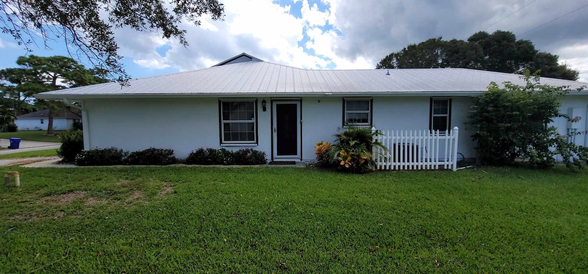 Glem bekymringene dine på dette romslige og rolige stedet. Vakkert, fullt av lys, rent og komfortabelt fullt hus på skattekysten. I et veldig rolig nabolag. Komfortabel queensize-seng. Hyggelig uteplass med gassgrill til grillen din og en hengekøye for å lese en god bok eller ta en lur. Kjøkkenet er fullt utstyrt. Mindre enn 1,6 km fra Intracoastal og supermarked. 12 minutter til South Beach Park med bil, flotte restauranter og Riverside Theater. Botanisk hage på mindre enn 3 engelske mil.