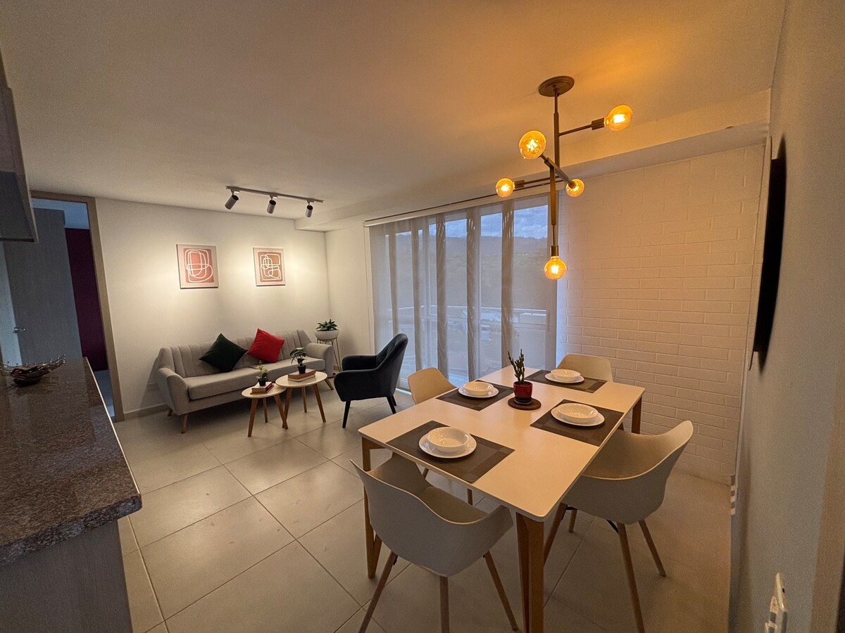 Moderne leilighet med sofistikert design, romslig og lys. Stilig og komfortabel stue med en fredelig utsikt over naturen rundt, noe som gjør den til et unikt sted å slappe av og nyte en flott atmosfære. Eiendom med en utmerket beliggenhet nær det internasjonale sykehuset, kjøpesentrene og nabokommunene. Ikoniske steder å besøke, for eksempel El Santísimo. Perfekt sted for hvile eller turer med flere formål. Komplekset har et treningsstudio, smart design og er svært lyst.