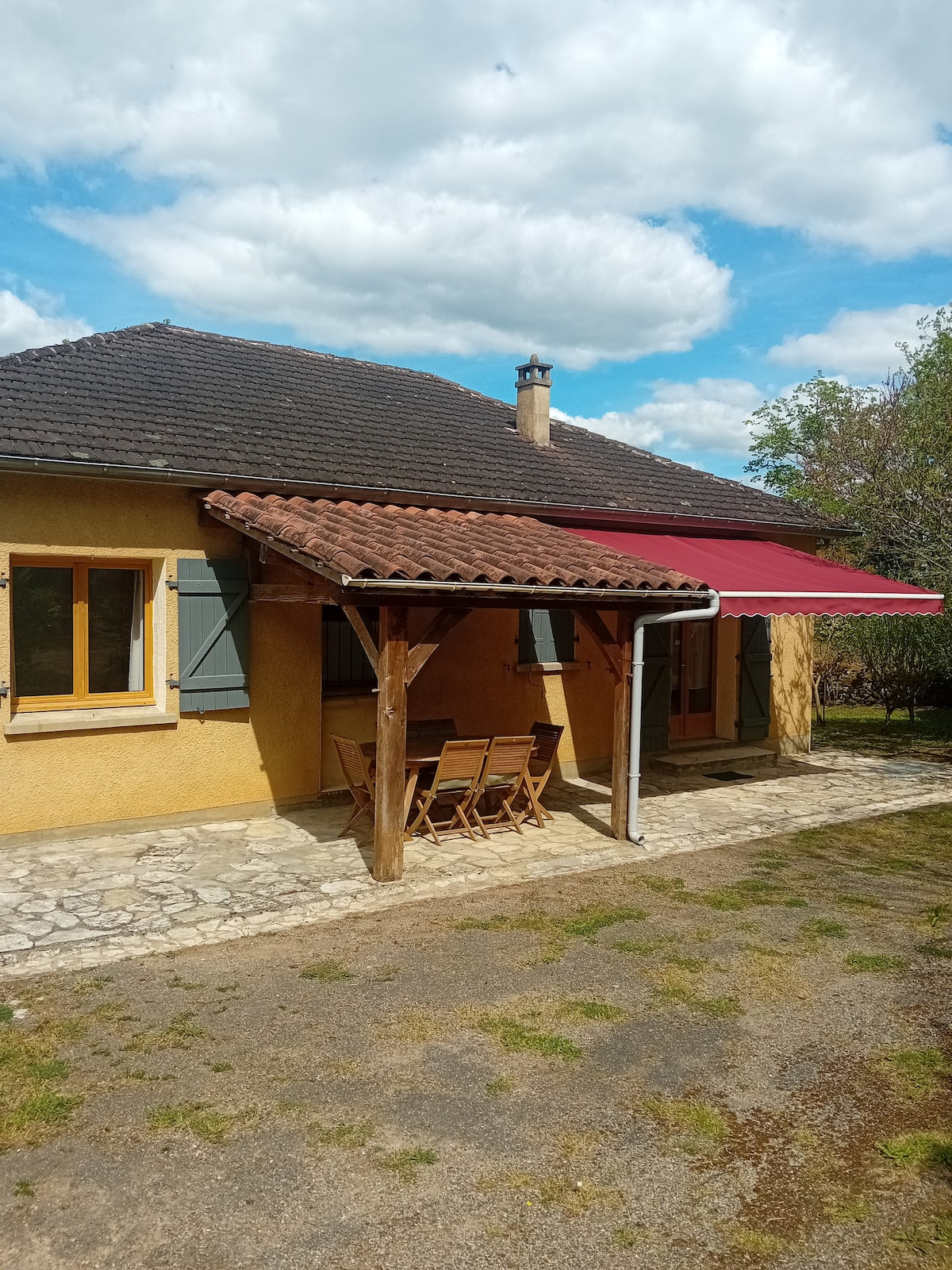 I en liten landsby i hjertet av Périgord Noir, uten noen naboer, vil vi gjerne ønske deg velkommen til vår hytte. Kom med familie eller venner og nyt overnatting for et avslappende og fredelig opphold på landet. Boligen har en veldig stor terrasse for å spise ute og slappe av i boblebadet. Du vil også sette pris på den store, svært lyse og gjennomgående stuen og de 3 soverommene med dusjrom.