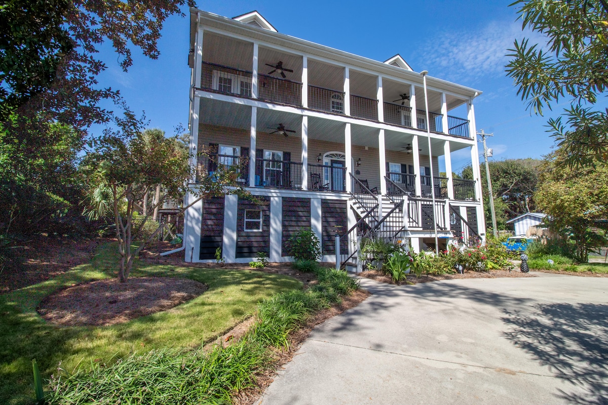 Hjemmet vårt tilbyr noen av de mest fantastiske utsiktene over Folly! Med fire private terrasser kan du se fantastisk dyreliv i myra, Intracoastal Waterway og Morris Lighthouse. Med to kingsize-senger, to queensize-senger, en køyeseng og tre bad – det er rikelig med plass. Nyt boblebadet med utsikt over myra, et avsidesliggende takrom med terrasse med fantastisk utsikt, pluss golfbane, dart, bordtennis. STR23-0364799CF LIC00726