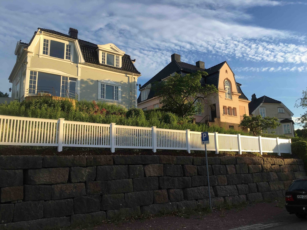 Welcome to historic Knatten — a peaceful, green oasis with panoramic views of the Oslo Fjord, centrally located in the heart of Horten - just a few minutes’ walk to the city center and beaches. Stay in a cozy guesthouse — a large, private room (30 m²) — with a luxurious continental bed, sofa, dining table and some kitchen essentials. Free fiber Wi-Fi. Free private parking. The guesthouse has no running water, but you’ll have full access to my well-equipped, kitchen and bathroom in the main house