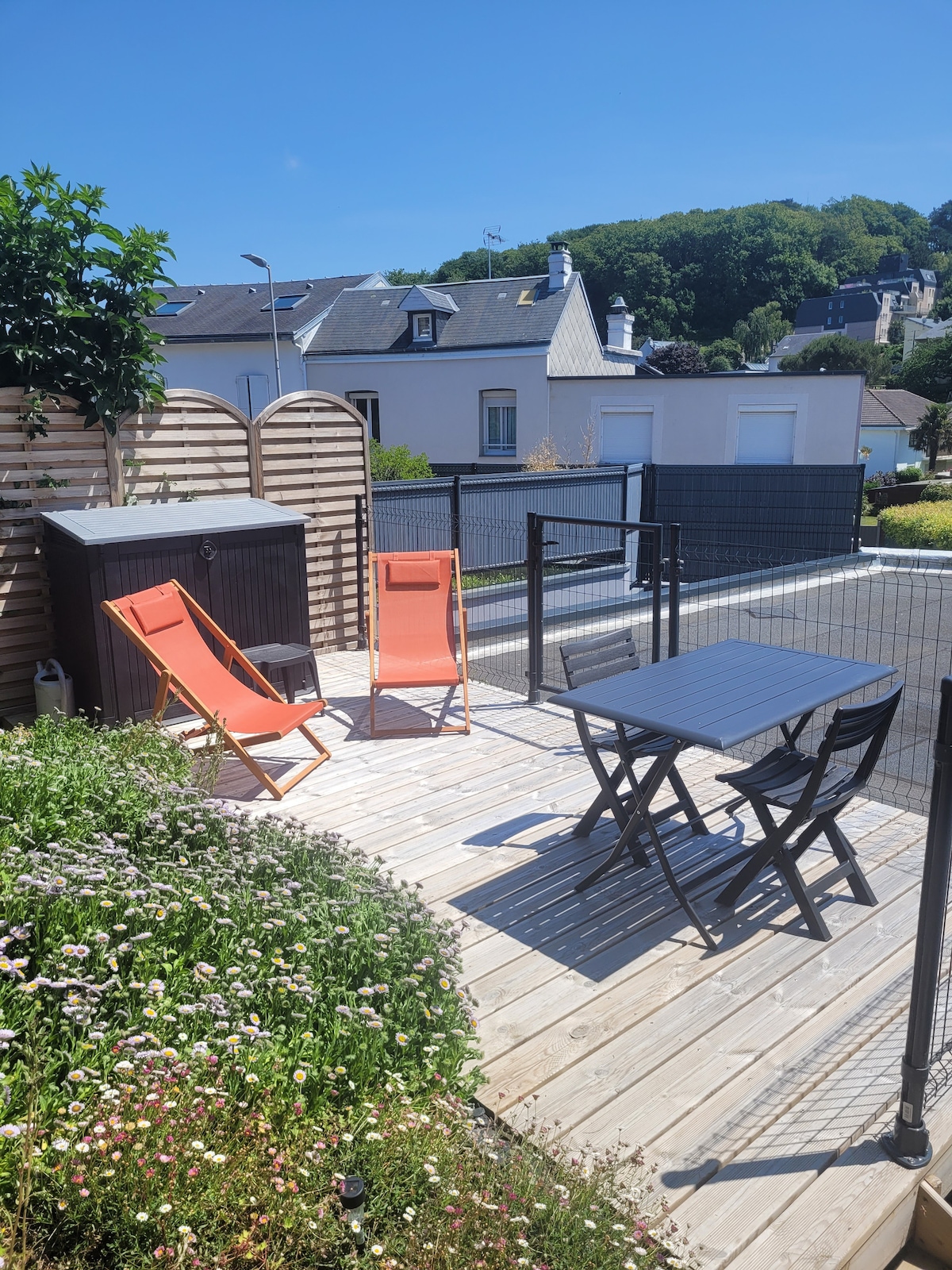 Ligger i et lite landsby i nærheten av havet: Etretat , Fécamp, St Jouin Bruneval, Le Havre og G.R. 21. Overnatting på 50 m² i første etasje med privat hage og terrasse, gratis parkering på gårdsplassen. Enkel tilgang i rullestol. Utstyrt kjøkken, stort sitteområde, TV pluss trådløst nettverk. Rom med skrivebordshjørne. Inngang med garderobe. Italiensk dusj, toalett, vaskemaskinen. Bord- og hagestoler, paraply og grill. Elektrisk oppvarming, elektriske rulleskodder.