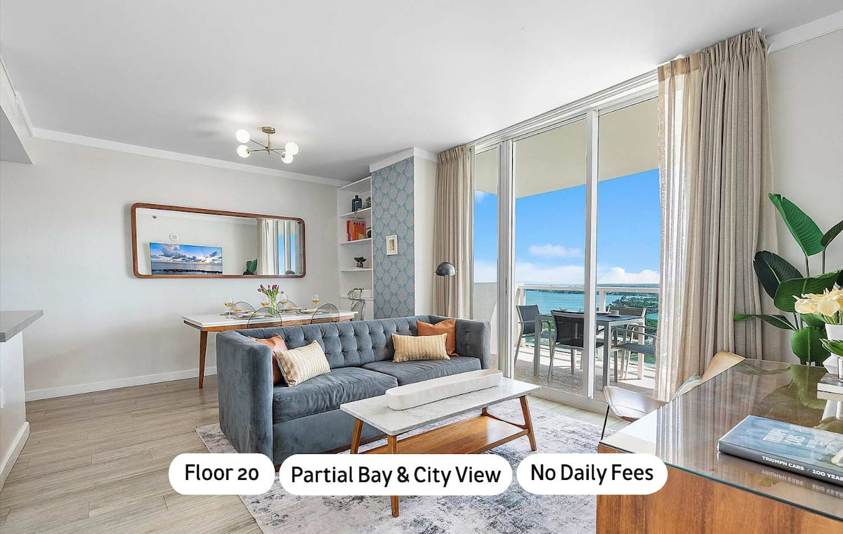 UTROLIG VERDI! For det første vil et gavekort på $ 30 til restauranten vår GreenStreet og en flaske champagne vente på deg på rommet ditt! I Coconut Grove tilbyr denne privateide og renoverte hjørneleiligheten i 17. etasje i en luksuriøs eiendom ved vannet, fantastisk utsikt over byen og bukten. Studioet er veldig romslig og fullt utstyrt for to personer, med fullt kjøkken, kingsize-seng og fullt bad. Nyt alle luksusfasilitetene vi tilbyr, basseng og boblebad med utrolig utsikt over bukten, fullt treningsstudio i toppleiligheten, sikkerhet døgnet rundt.