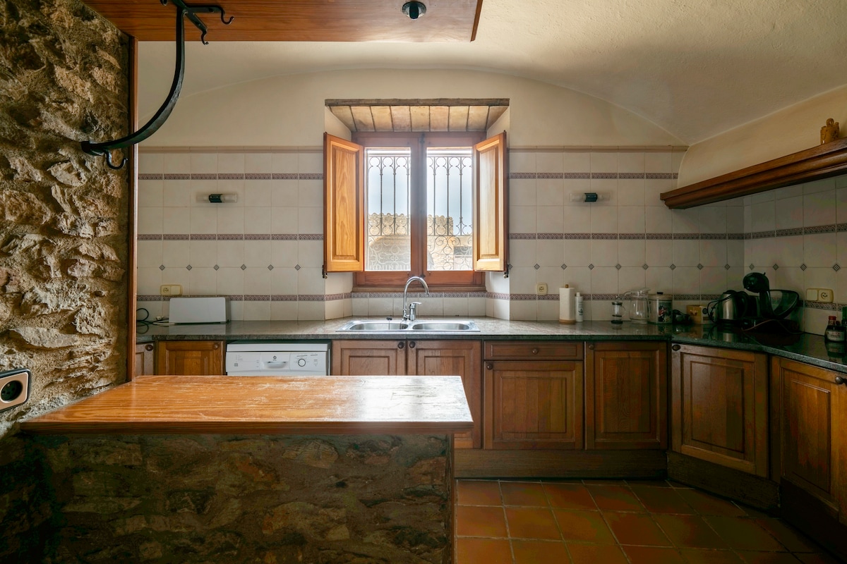 🌿 Reis til hjertet av Costa Brava og bo i dette majestetiske huset i indisk stil som ligger i det historiske sentrum av Begur, bare noen få skritt fra slottet og hovedtorget. Dette historiske hjemmet er perfekt for familier, vennegjenger eller par, og tilbyr en autentisk, komfortabel og sjarmerende opplevelse. Du kan nyte utsikten over Begur slott, mens du er omgitt av restauranter, butikker og det pulserende lokale livet. Et ideelt sted å slappe av og fordype deg i Middelhavets essens.