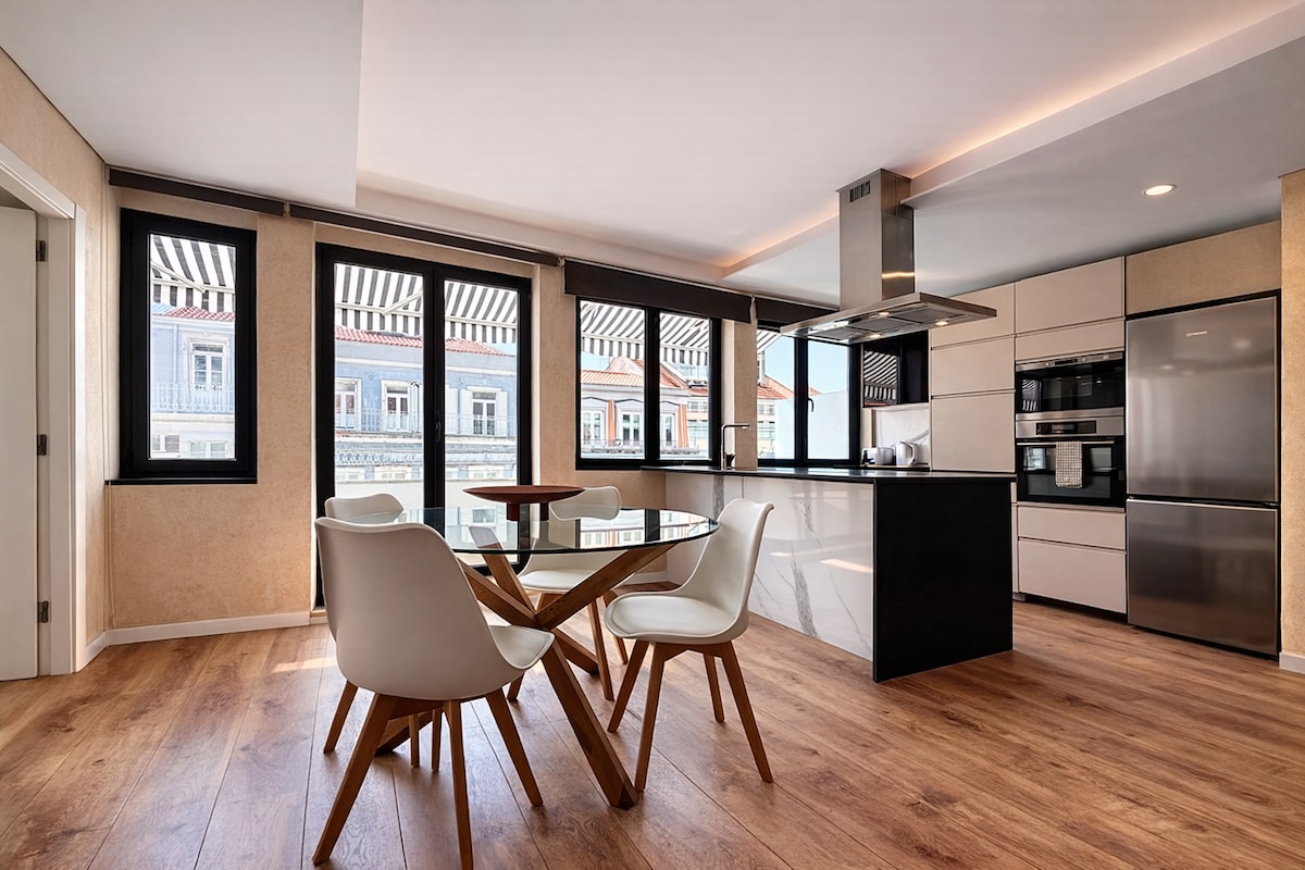 Takterrasse med utsikt over Lisboa og Frihetsmonumentet