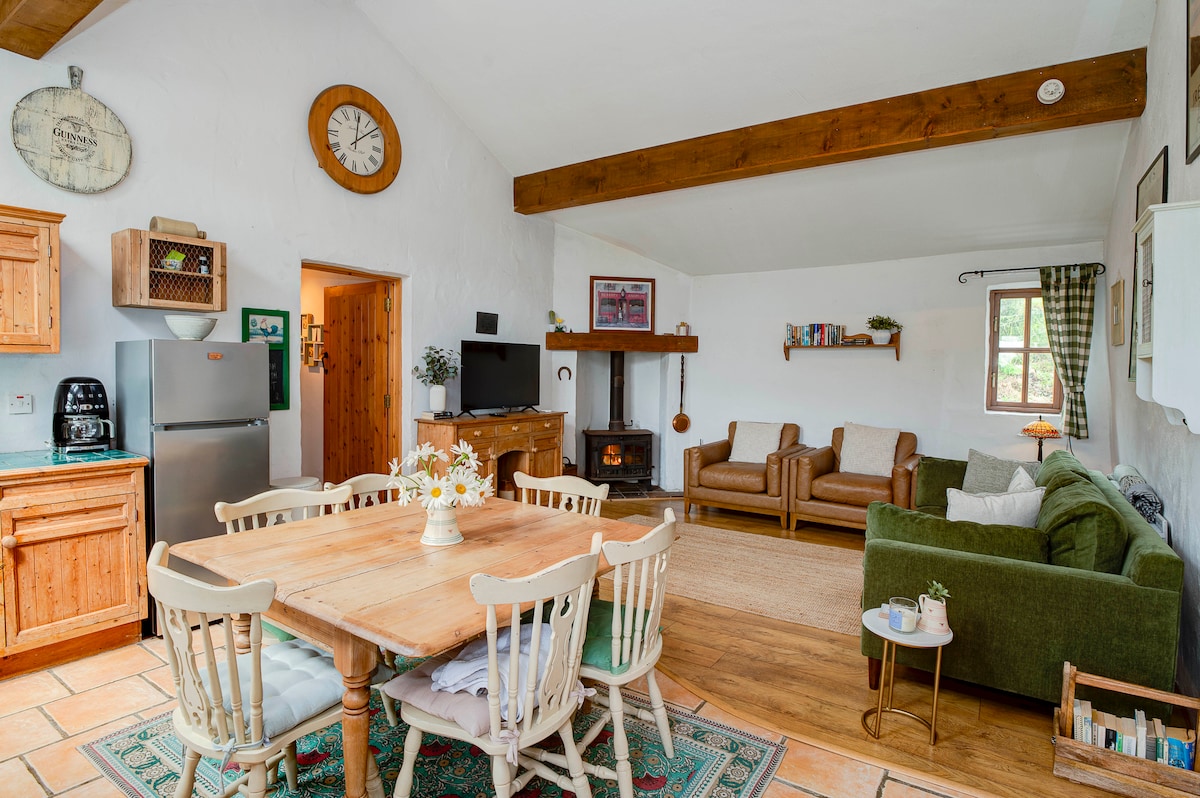 Velkommen til Sunset Cottage, en vakkert restaurert hytte hvor tradisjonell sjarm møter moderne luksus. Denne hytta har 180° panoramautsikt over Atlanterhavet, og byr på fantastiske solnedganger og fredelig kystskjønnhet. Innvendig er det originale steinvegger som går i ett med elegante møbler og toppmoderne fasiliteter. Nyt en velkomstkurv med nybakt brød og lokale godbiter. Perfekt for en fredelig ferie eller en eventyrfylt tur langs den ville Atlanterhavskysten.