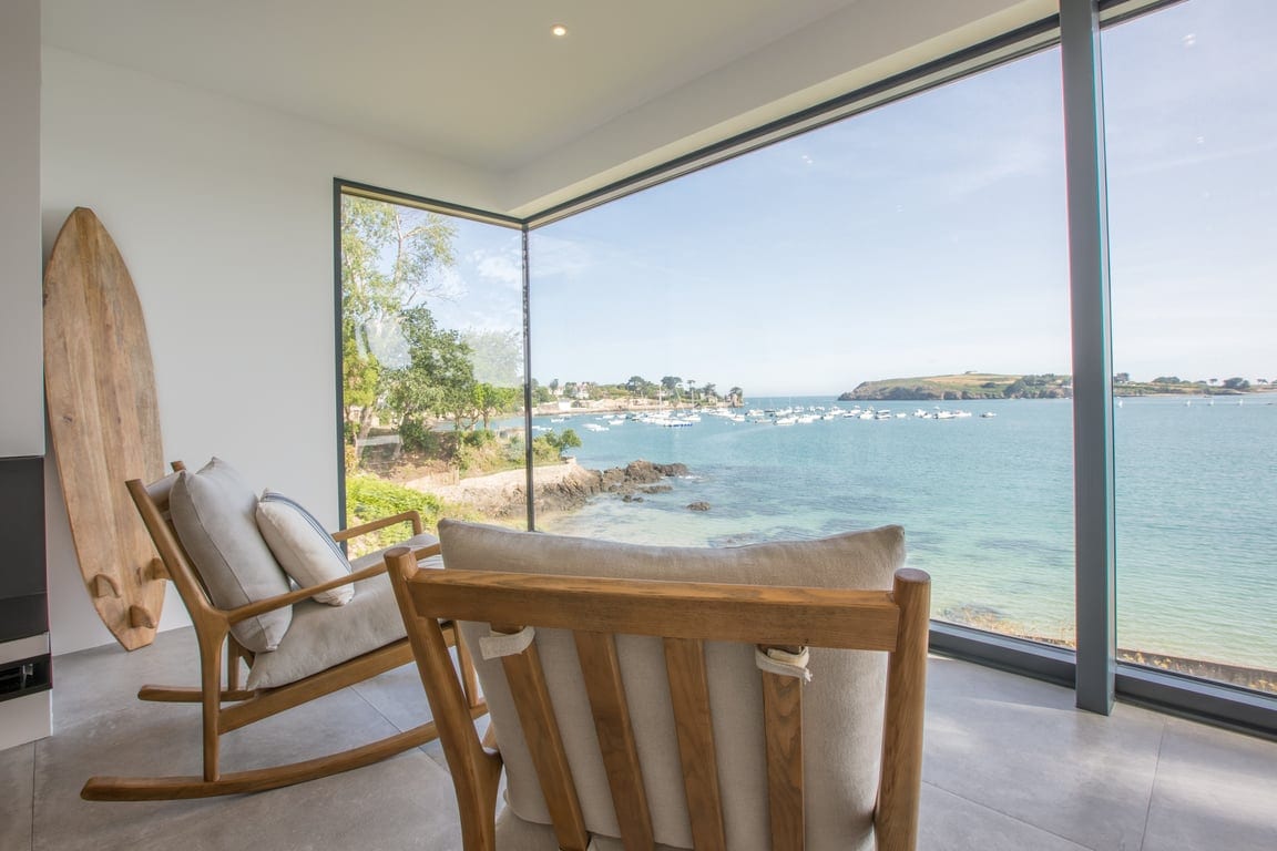 Denne lyse, 51 m² store duplexleiligheten tilbyr eksepsjonell panoramautsikt over sjøen, to møblerte terrasser og direkte tilgang til stranden. Den ligger i en luksusbolig i Minihic-distriktet, og det er plass til opptil fire personer i rolige og privilegerte omgivelser. Perfekt for en avslappende ferie, bare et steinkast fra stranden. Rengjøringsgebyrer er inkludert i prisen og dekker alt av sengetøy (laken, håndklær, badematter, kjøkkenhåndklær).