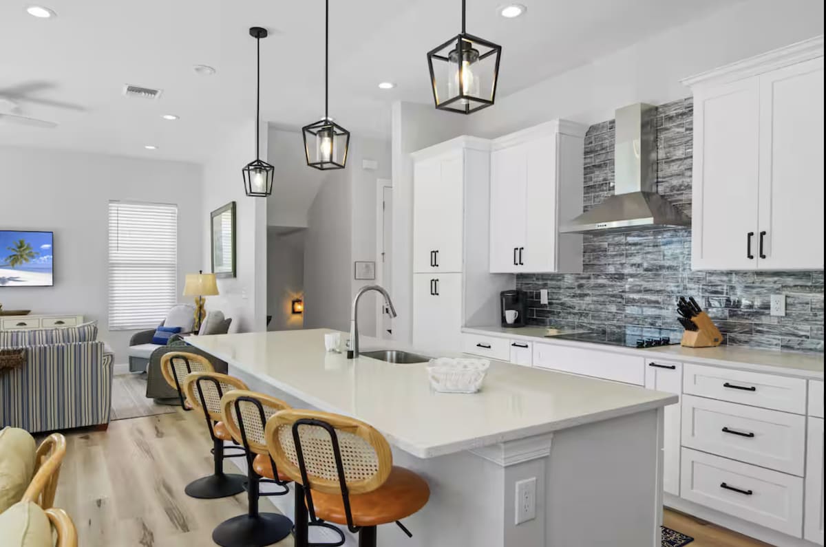 Waterfront fun meets luxury in this 3-story Fort Myers Beach home on San Carlos Island! Featuring 4 bedrooms, bay-view living room with balcony, and a full kitchen & dining on the 2nd floor. Enjoy an outdoor kitchen with grill and bar, plus pool table, ping pong & air hockey. Private dock with boat lift and a rooftop deck with turf, lounge chairs & a 6-person hot tub for sunset soaking. Perfect for families, boaters & group getaways.