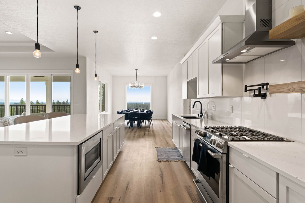 1200 kvm med åpent konsept for å spre seg ut. Stor terrasse i andre etasje med fantastisk utsikt. SVÆRT privat lukket uteplass med jacuzzi. Utendørsdusj (sesongavhengig). Nær flyplassen, underholdning og Spokane sentrum. Nye mørkleggingsgardiner i hvert vindu. Dedikert arbeidsplass (om nødvendig). Perfekt for hjemmeferie, ferie, jobbreise, helgetur. i nærheten av to kasinoer, flyplassen og mindre enn ti minutter til sentrum fra døren