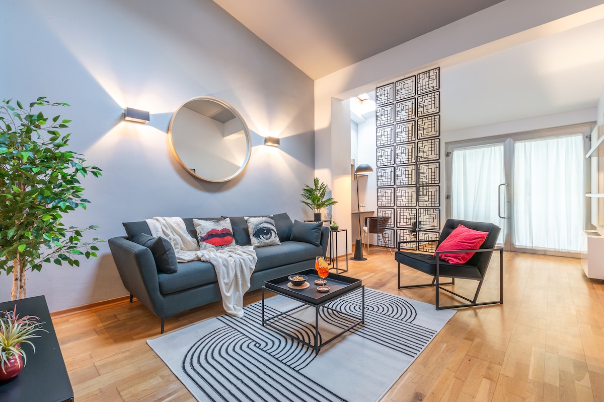 Elegance & Comfort in the Heart of Florence ⚜️ Experience the charm of a master bedroom with exposed beams and a spacious 30sqm living area designed for your relaxation. The kitchen is fully equipped with premium amenities (Bialetti coffee maker, kettle, microwave). The Highlight? Dual Bathrooms: A modern one with a shower and a second rustic style with a bathtub. Enjoy total independence with 24/7 Check-in available.