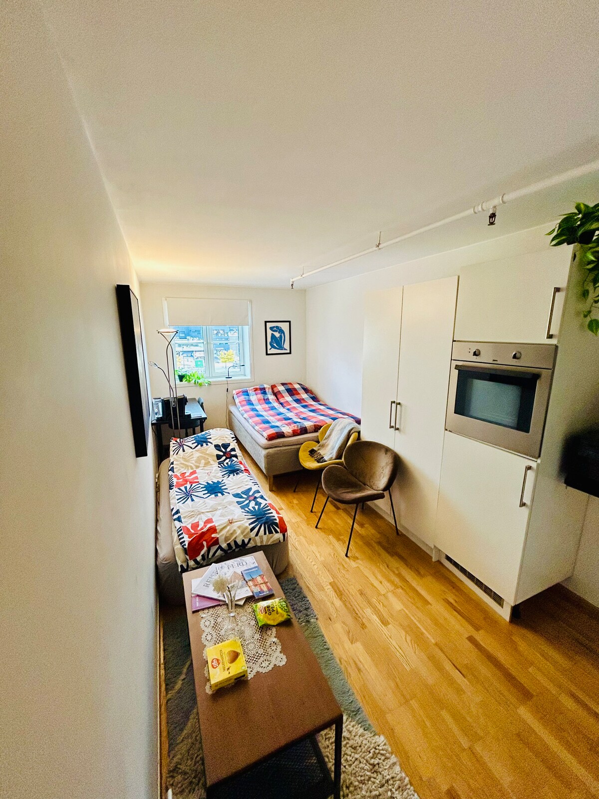 Velkommen til vår praktiske studio leilighet som befinner seg midt i Trondheim sentrum. Umiddelbar nærhet til restauranter, butikker, kjøpesenter og ikke minst et perfekt startpunkt for å utforske Trondheim. Ca. 1 minutt til Flybussen. Ca. 3 minutter unna togstasjonen.