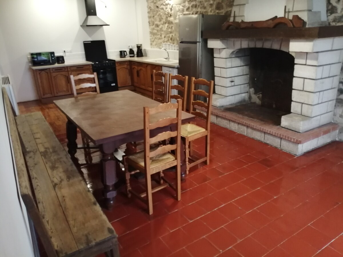Kjære reisende, Trenger du en stor munnfull luft, ro og avslapning, uten å være avskåret fra verden ... Alle butikker og fasiliteter innen 10 minutter. Velkommen til "Gîte Dordogne". For å slappe av, er det på stedet et stort basseng 6mx12m, sikret, med liggestoler, parasoller og vannleker. En boule-bane (med baller). Et barneområde (hytte, sklie, leker). En parkeringsplass. En park på 5000 m². En flott utsikt over vinmarker og landskap. Vertene Suzon og Alain