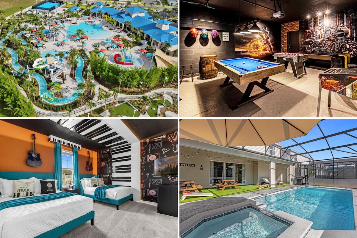 Amazing Brand New Modern Luxurious Home at Encore Resort Reunion. PET-FRIENDLY & Minutes to all Theme Parks. BRAND NEW HOME. Private Pool & Spa / Game Room / Movie Theater / Gym / Massage Chair / Fireplace / PS5 / Board Games & Much More. Embrace the extraordinary and book your stay at our home, where luxury, entertainment come together for an unforgettable vacation experience. ** Please review the rules before booking. Waterpark access is not included. **