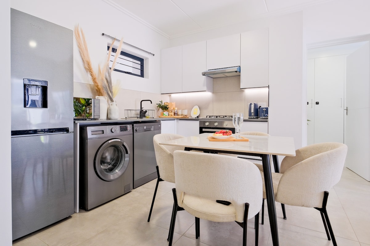 Opplev et luksuriøst opphold i denne Fourways-leiligheten, perfekt for par eller forretningsreisende. Nyt bekvemmeligheten av å være i sentrum av Fourways. Trekk deg tilbake til din fantastiske leilighet med én queensize-seng, et fullt utstyrt kjøkken og et moderne bad. Slapp av på terrassen eller på sofaen og nyt en TV med Netflix og Youtube. Leiligheten har strømforsyning som driver TV-en og WiFi-en. Bestill oppholdet ditt i dag og nyt komfort og luksus.