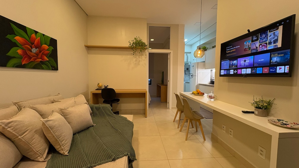 Hyggelig og komplett leilighet for oppholdet ditt! Nyt en rolig og familiær atmosfære, med en strategisk beliggenhet i nærheten av markeder og apotek. Leiligheten har: • komfortabel queen size-seng på soverommet • Vaskemaskin, tørketrommel og oppvaskmaskin for enkelhets skyld. • alt nødvendig utstyr for oppholdet ditt • privat garasje, noe som garanterer sikkerheten til kjøretøyet ditt Ideelt for de som søker praktiskhet og komfort i et rom designet for å gjøre opplevelsen din unik.