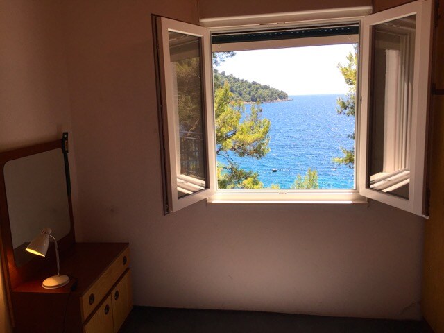 Takk for interessen! Dette stedet er ikke egnet for barn eller kjæledyr. Beklager. 😊🙏 Det er heller ingen aircondition, bare bærbare vifter og havbrisen. The Blue Gate er et enkelt tilfluktssted omgitt av furutrær, med trapper som fører ned til Adriaterhavet. Tre soverom og to bad. Stedet er litt gammelt, men rent og funksjonelt. Naturomgivelsene er gamle og vil sette deg i en vakker, avslappet og lat dalmatisk hypnose!