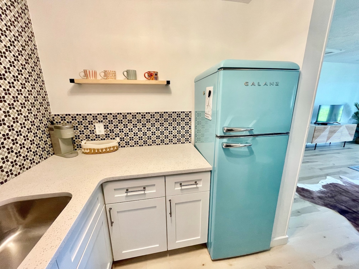 Regel nummer én er å kun ta med gode vibber! Fullstendig renovert studioleilighet i første etasje, noen SKRITT unna de hvite sandstrendene på Floridas Emerald Coast. Helt ny flisdusj, nytt gulv overalt og et fullstendig oppgradert kjøkken med alt du trenger for å lage mat. Stranden ligger rett over gaten, to minutters gange unna. Har du ikke lyst til å gå på stranden? Nyt en drink på terrassen på baksiden med utsikt over innsjøen mens du nyter utsikten over Pier Parks SkyWheel.