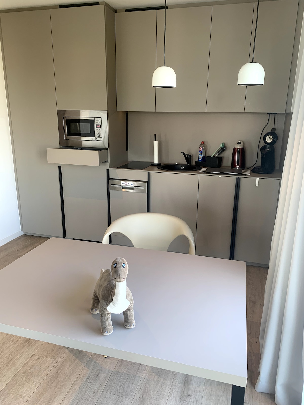 Fin 80 kvm leilighet i første etasje, helt nybygget i 2018, med badstue, bakgård, peis, bad med badekar og stor dusj og fullt utstyrt kjøkken. Veldig sentralt, to minutter til T-banen, fem minutter til alle restauranter/kjøpesentre og den vakre historiske byen Oberursel, ti minutter langs Urselbach (liten bekk) til svømmehallen. Frankfurt/M. 10 minutter med bil eller 20 minutter med T-bane. Oberursel ligger direkte ved Großer Feldberg med mange utfluktsmuligheter.