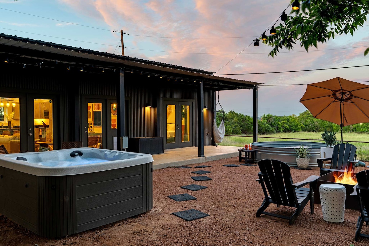 Moderne containerhjem, Hill Country, basseng, vin!